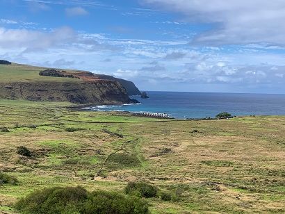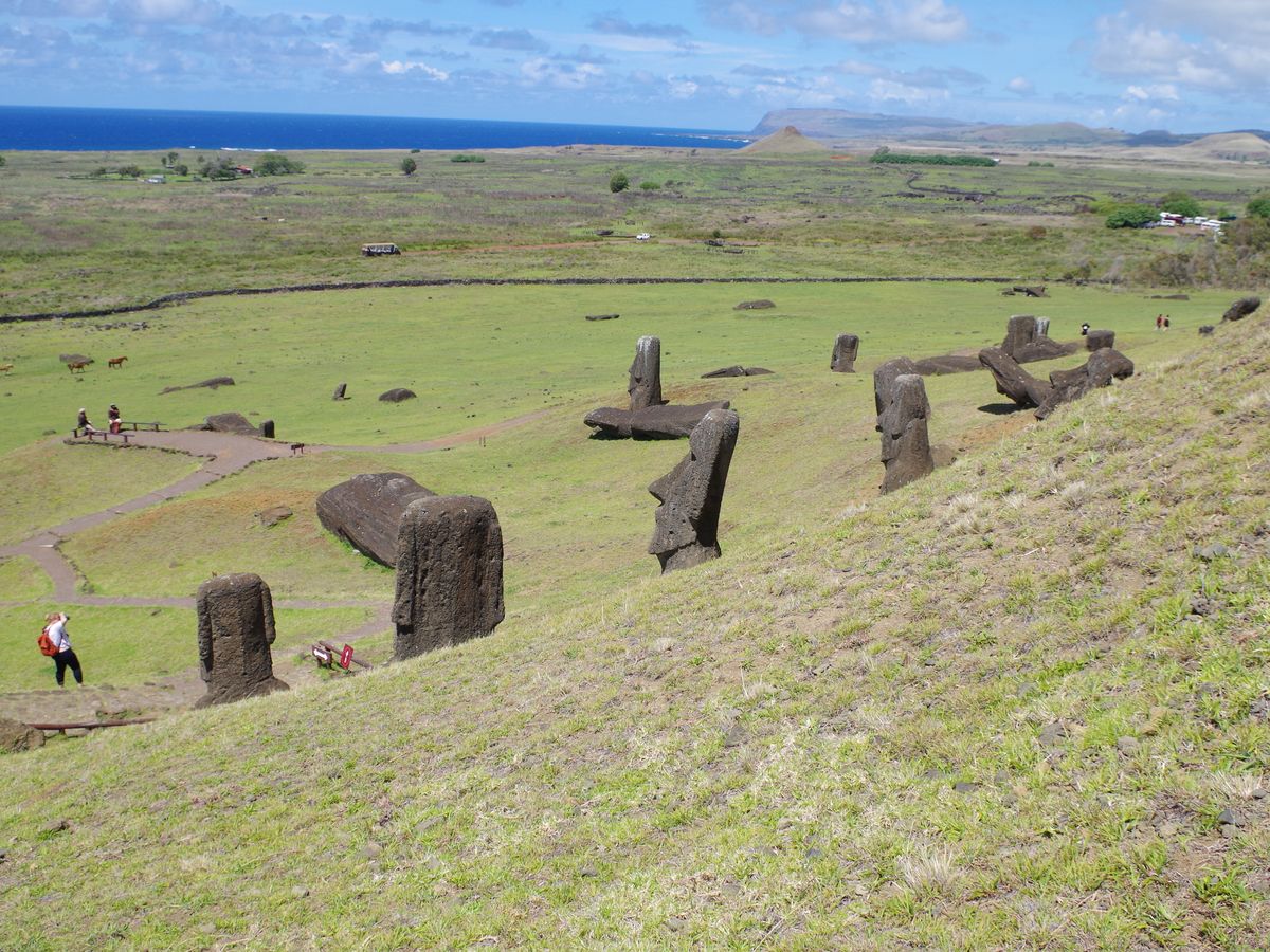 本当に目の前にモアイがいる。それだけで感激していたが、私が考えていたほどこの島の歴史は生易しいものではない。そんな歴史の1ページをガイドが紐解いてくれた。来島する前にも勉強はしてきたが、あっちにもこっちにも忘れ去られたように点在するモアイを見ていると、私は何を憧れてここに来たのだろうとさえ考えてしまう。どこにでも戦争は有った。その犠牲者なのだ。大きな津波もあった。その犠牲者なのだ。このモアイ文化が展開されていた時の人々は、どうだったのだろう実際は。その心はどこへ行ってしまったのだろう。幸せだったのだろうか。