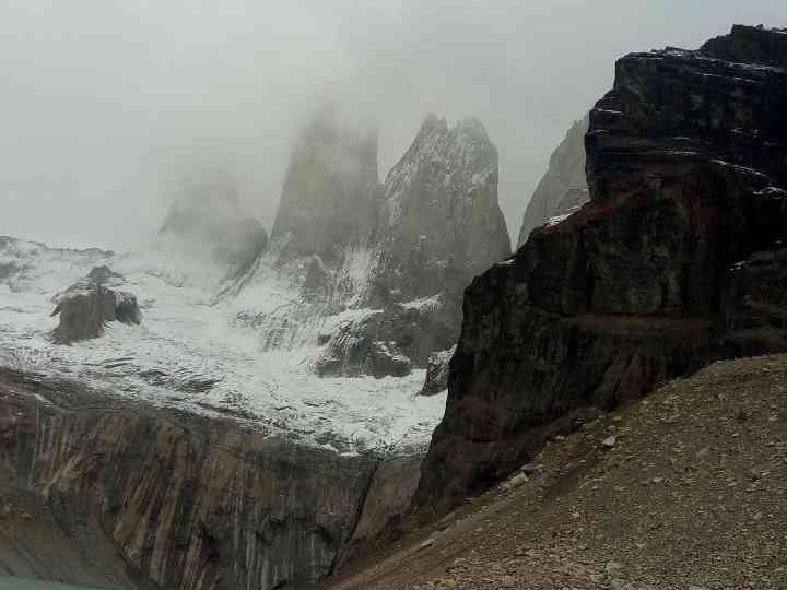 プエルトナタレスのホテルを7:30に出発、9:00にトレッキング開始地点に到着。ツアー参加者は約10名、全て若者ばかり。ガイドは2名で、2人とも英語が堪能であった。トレッキング中間点の山小屋まで2時間の行程であったが、我々2人は30分遅れで到着。午後の天候が悪くなるとの予想で、昼食を食べずに出発。目的地まで2時間の予定がまたもや30分遅れとなってしまった。到着後すぐに雲がかかり、目指す3つの岩峰は殆ど見ることができなかった。又急に気温が下がり始めたため、昼食は半分ほどですぐに下山開始。山道の傾斜がきついため、家内は膝を痛め歩行困難となり、下山に4時間30分要した。予定より3時間程度遅れ、ホテルに20時30分に帰還した。他の参加者には時間待ちをさせ、またガイド1名は我々のみの世話でかかりっきりとなり大変なご迷惑をおかけした。
