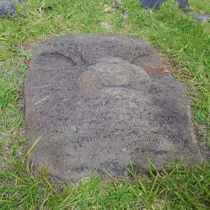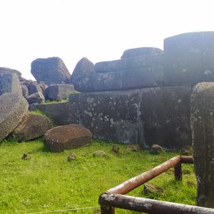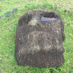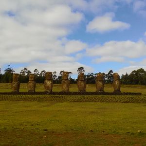 一体だけぽつーんと立っています。他のモアイもそうですが、かなり遠く距離までしか近づけません。柵はありませんが、足元の石の変わり目とか段差で立ち入り禁止になってます。気づかず踏み込んでしまったときどこからともなく、大きな声で注意されびっくりして足元みたら石の大きさが違っていいました(>_<)まっすぐの線じゃないからわからんよー(T_T)