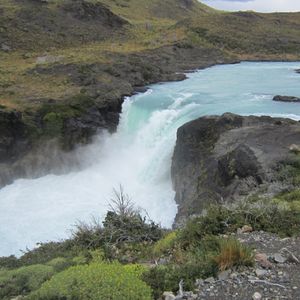 Lago Pehoe と Cuernos del Paineを眺める昼食