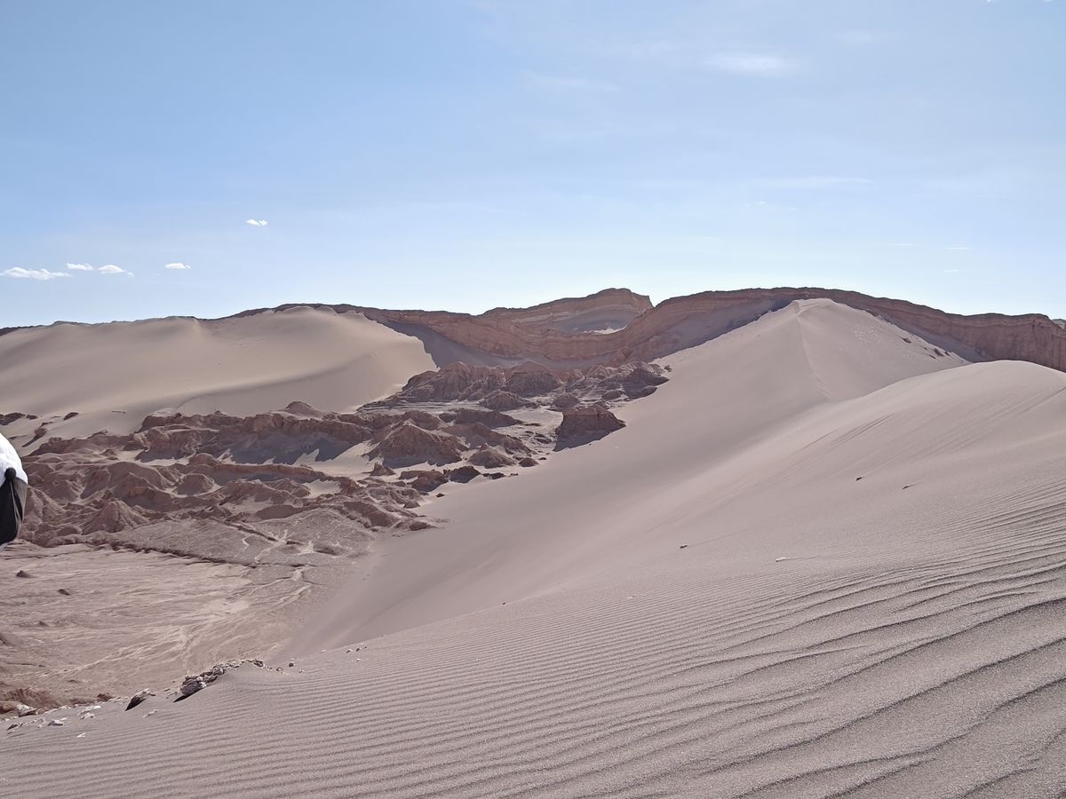 特に月の谷の軽いトレッキングで、頂上でみた砂砂漠と礫砂漠の組み合わせは絶景そのものでした。