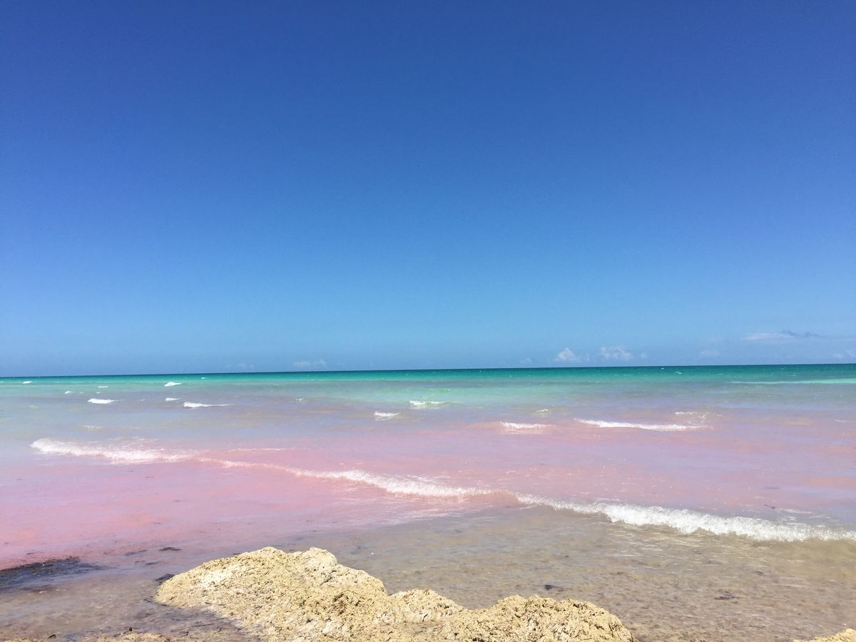 残念ながらピンクレイク(塩田)から水が引かれていてパンフレットのようには見れなかったのですが、現地ドライバーさんが、塩田の水が流れ込んだビーチに特別に連れて行ってくれました。