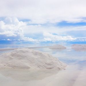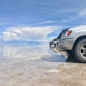 昼前は曇っていたのに、ウユニ塩湖に出るとパーっと雲が切れてきて、とても良い状態になりました。