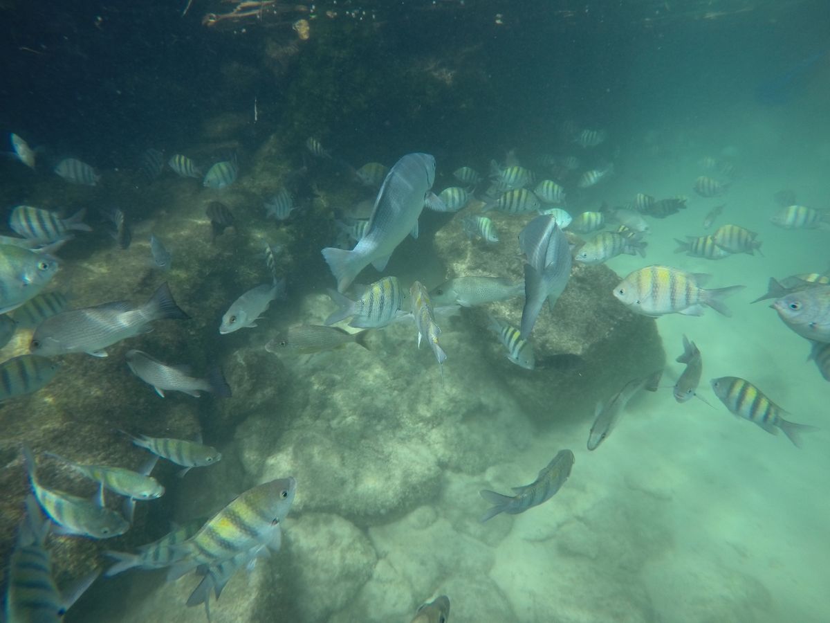 浮き輪を使い、まるでジャングルのような雰囲気の中をぷかぷか浮かびながら流れていると眺めの良い大きな場所に出て、シューノーケルを楽しみました。イメージ画像ほど魚が群れている場所を見つけることができませんでした。またイメージ画像ほど水が澄んでいないので水中の写真も上手く撮れず…。もしかしたら魚が大量に群れている場所は有料の場所なのかも知れません。