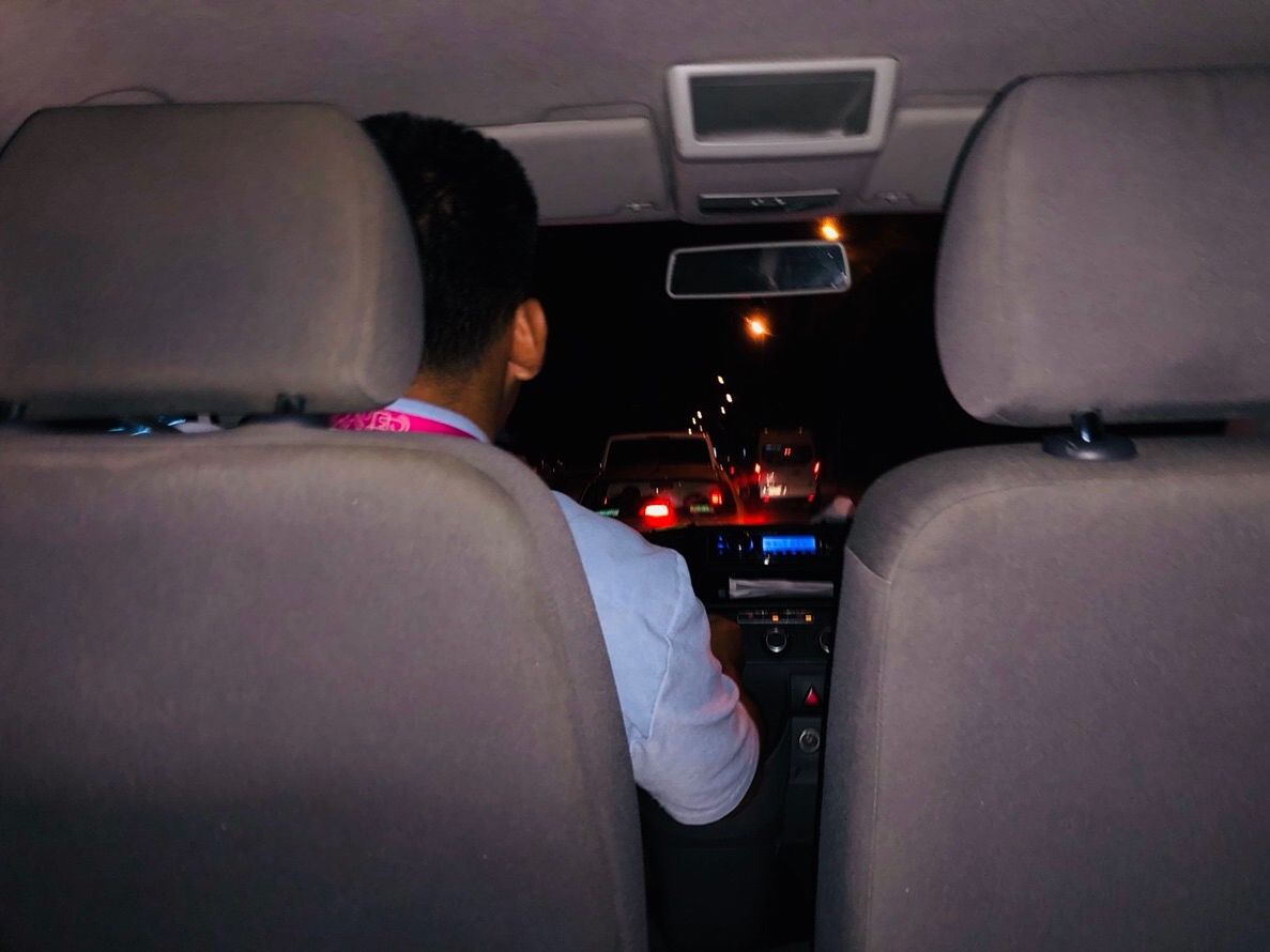 乗り合いでしたが、他の人をおろして運良く私たちだけになったのでドライバーさんの計らいでモニュメントを撮影できました。(夜なので人物はライトに照らされて幽霊みたいになるのでモニュメントだけ撮影した方がいいです)