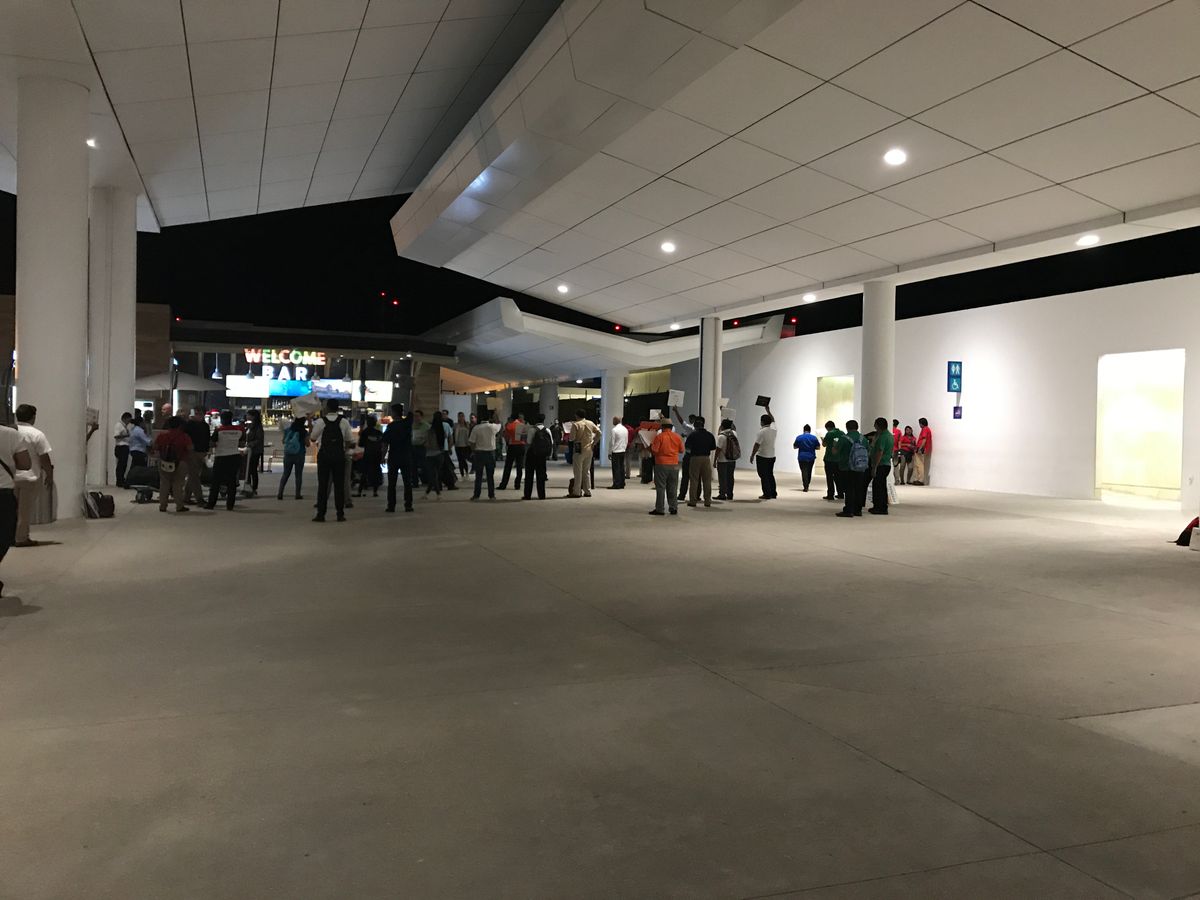 メキシコシティ空港で予定便に乗れず、空港から電話連絡。1時間半後の便で20時到着。待っている場所がカンクン第4ターミナル建物の外にあり、数十mほど離れているので分かりにくい(ガードマンが建物内に入れないようにしていると思う)。出口を出た直後の建物の中で再度電話連絡した(メキシコシティ空港第2ターミナルでも利用したことがあるが、待っている場所が出口の外、建物内だった)。多勢が待っている場所を出口から見通せず。電話連絡は通じていたが、黄緑と白のTシャツ姿は1月のため夜は寒く、黒いジャンパーを着ていたので、分かりにくかった。