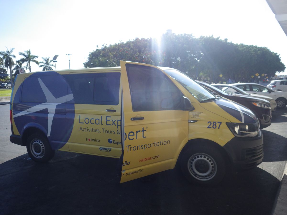 もうひとグループがバンの中に座っていて、運転手も私たちを待っている状態でした。とてもスムーズにホテルまで到着したので、ありがとうの意味を込めて4人分で4ドルのチップを渡しました。荷物を出してもらった後に「Thank you,sir」と言って渡すとスマートな感じがします。運転手さん、感じの良い方でした。