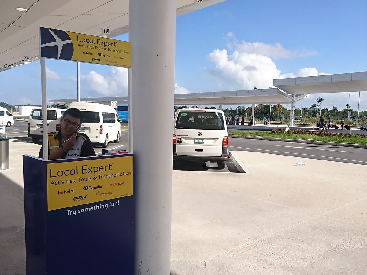 送迎の予約時間があるかと思いますが、空港にドライバーは沢山待機しているようなので、空港に着いたら、とりあえず両替所でメキシコペソを入手しておいたほうがいいです。街中で両替所を探すのは大変なので。その後、この旅行会社の小さなカウンターを探してください。安くてとても丁寧で安全でした。