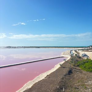 昼食後、セノーテまでの方々と別れてピンクレイクに向かいました。2時間ほどかけて到着。到着当初湖面を見て外したかと思いましたが、近づくとピンク以上の赤色にびっくり‼️