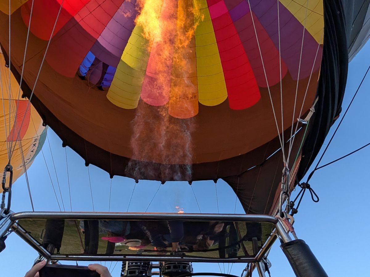 気球の炎が温かいので、上着は一枚あれば十分かと思います。