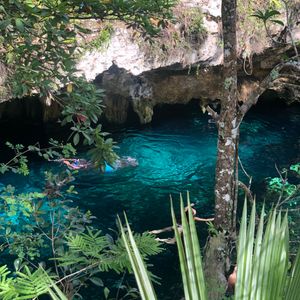 朝早くに立ち寄ったグランセノーテは、人も少なく透明度も抜群でしたが、午後からのイキルは壺形の深いセノーテで芋の子を洗うような人だかりで、水の透明度もイマイチでした。でも、セノーテと言ってもそれぞれに深さや形が違うので、両方見れて良かったと思います。ツアーで貸してもらえるシュノーケルセットのサイズが合わなくて、セノーテの底へ落ちて行き、同行者が取りに潜ってくれて、その姿がおもしろかったです。