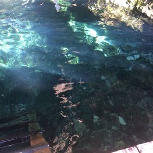 早朝のグランセノーテは、太陽が顔出した時のキラキラした泉はとても綺麗でした。曇りの為長い時間それを見ることできませんでしたが、曇ってても分かるほど水が透き通り青く綺麗でした。