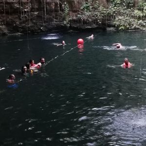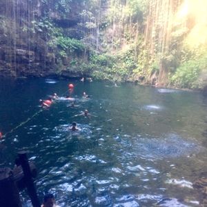 セノーテは他を知らないので比較できませんが、イキルだけでも十分雰囲気は堪能できるかと思います。はじめは泳ぐつもりはなかったものの、いちおう水着を持参していたので、暑さが厳しい中清らかな水を見て、泳いでみることに決めました。といってもちょっと浸かっただけですが。水は冷たく、とても気持ちよかったです。入ったのは私たちだけで、他の参加者は写真を撮るだけでした。