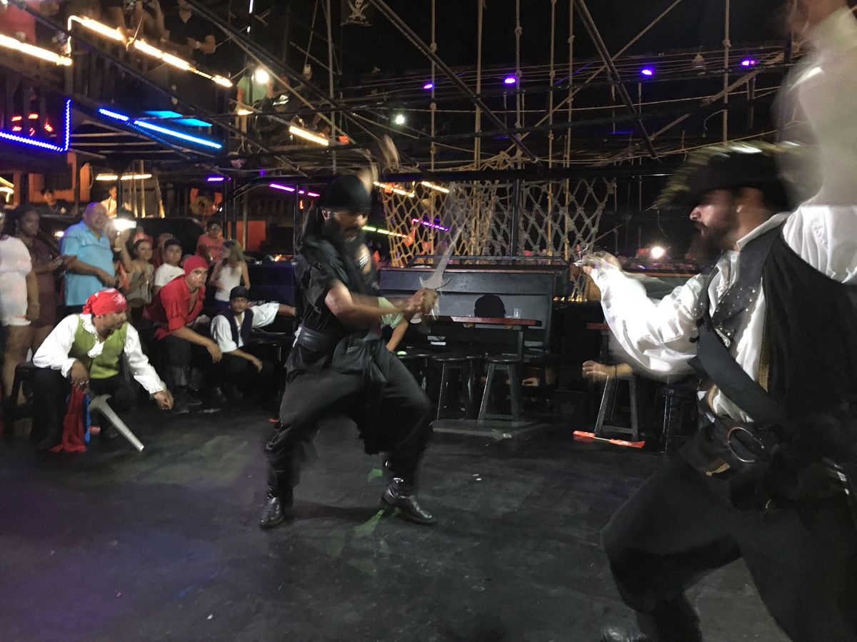 カリブ海で本格的な海賊達とクルージングをしてワイルドな料理を食べたり飲んだり、海賊達のアクロバティックなショーは圧巻でした!