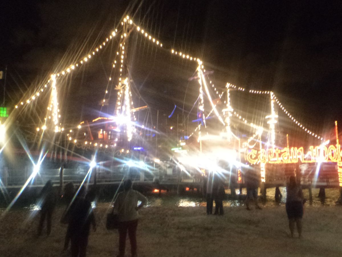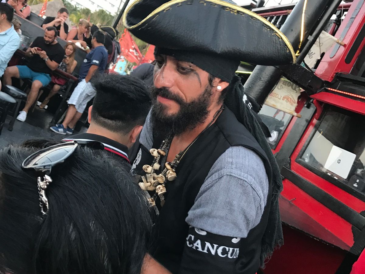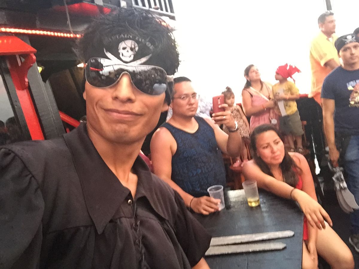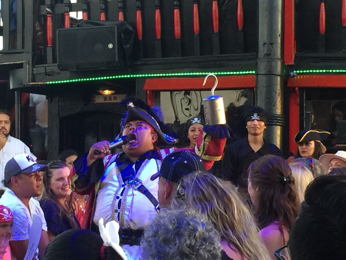 英語もスペイン語もほとんどしゃべれない中での参加でしたが、アクロバット担当の海賊の中に日本語の上手な方が1人いて助かりました。海賊風のメイクもしてくれました。