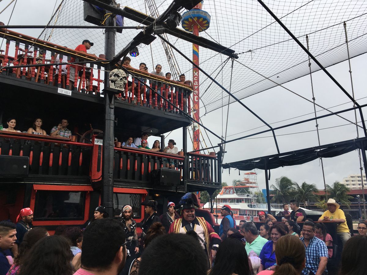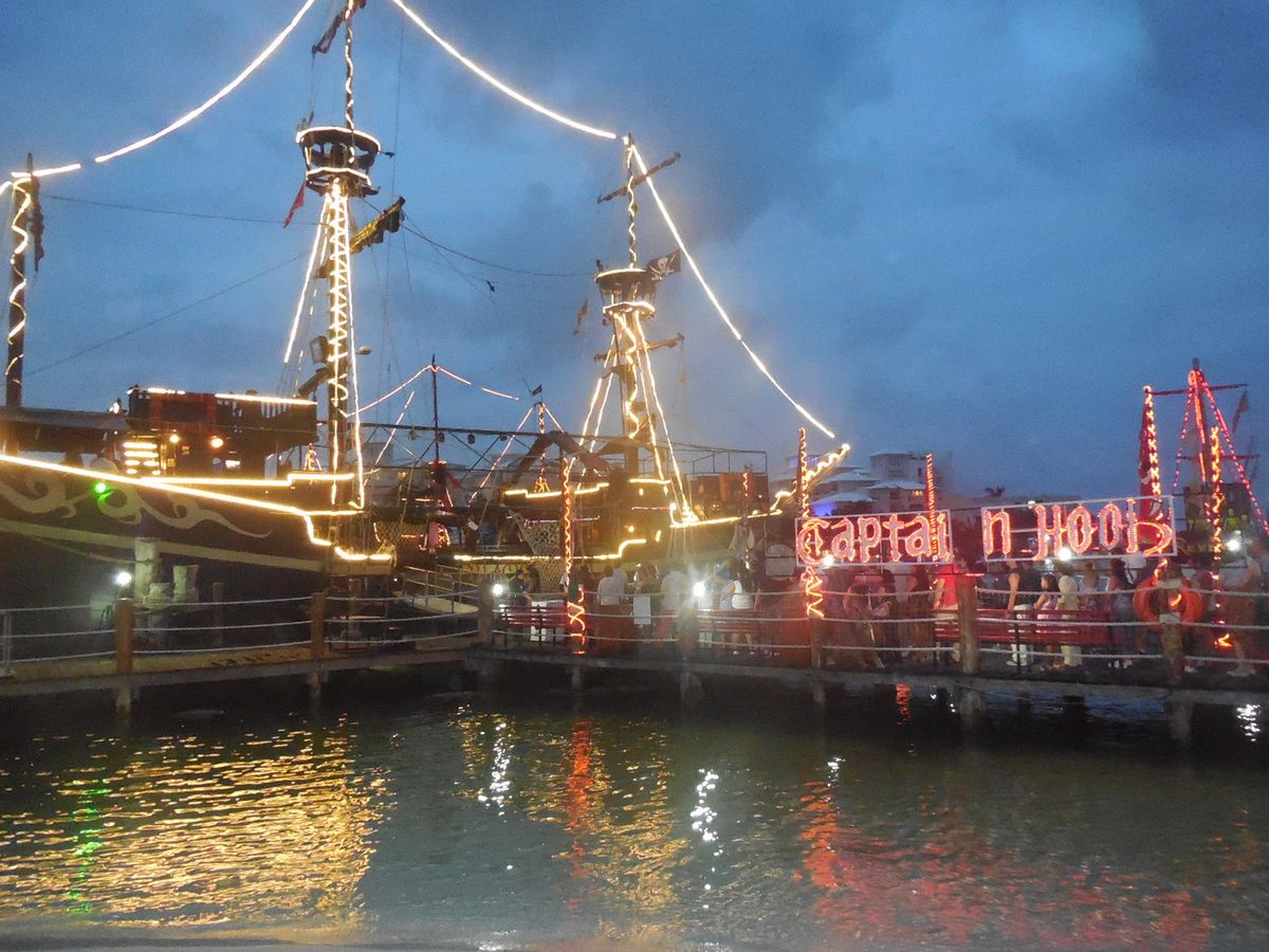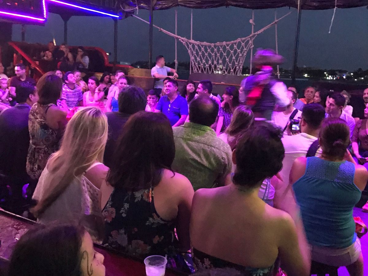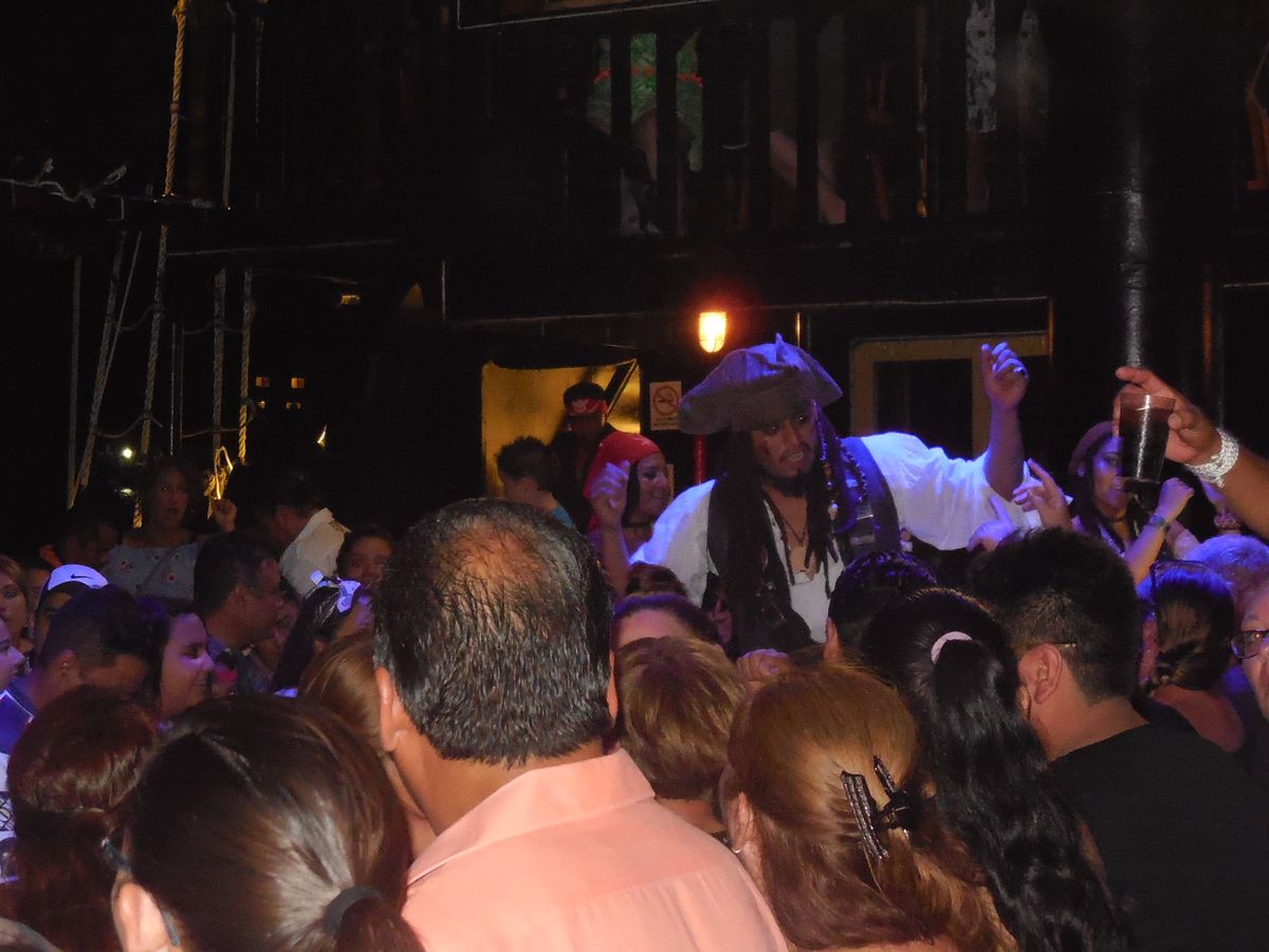 子供4人連れて家族6人で参加しました。キャプテンフックの巧みな話術に乗せられて、最後は参加者全員がクルーになったような気分にさせられます。乗船者参加型の余興あり、懐メロから最新のミュージックまで流れるダンスタイムあり、海賊たちのパフォーマンスありと盛り沢山でした。私達はステーキ&ロブスターにしましたが、食事を楽しむよりショーがメインだと思いました。ココボンゴのような18禁のクラブではないので、子供達は思いっきり踊れてすごく楽しかったみたいです。またメキシコ人ですが日本語を話せるクルーもいて、すごく助かりました。絶対おすすめです!