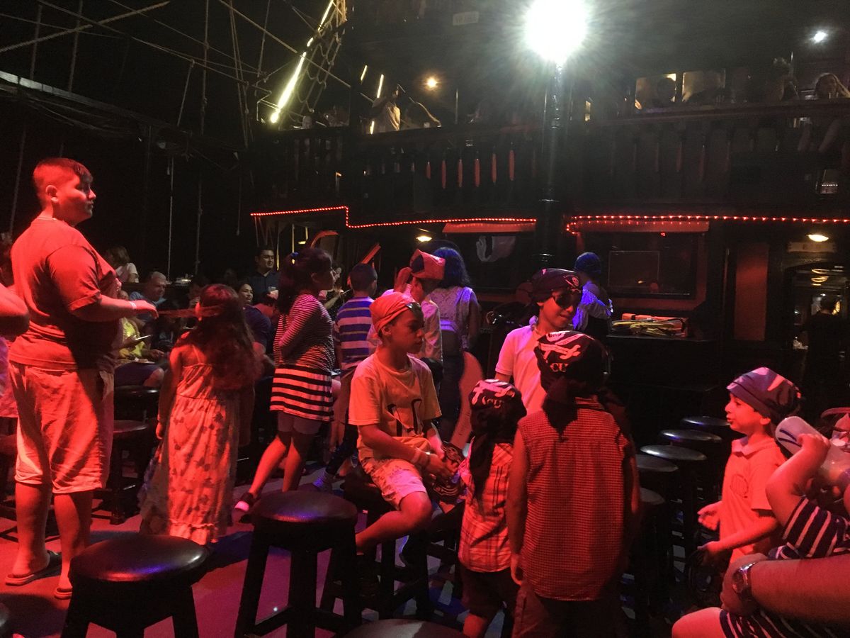 カリブの海賊船に乗れるととても楽しみにしていましたが、、てっきりショーがあるのかと思っていたら大人の遊びのゲームがあったり、クラブのように踊って楽しむという船の内容で