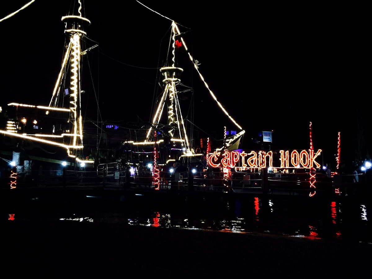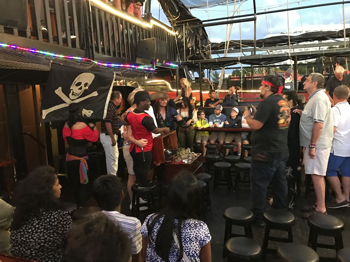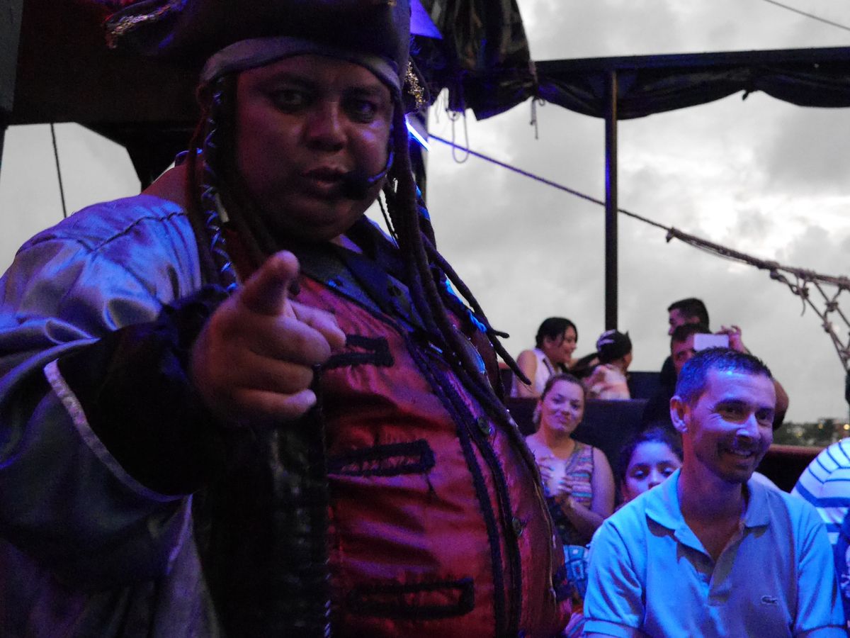 私たちが乗ったのはフック船長の船。雰囲気たっぷりのフック船長が冗談交えながら長時間のクルーズをずーっと盛り上げてくれました。案内は英語とスペイン語なので、言葉が全くわからない人には理解できない部分もあるかもしれませんが、ゲームやダンス、後半のチャンバラは誰でも楽しめます!ショーがメインなので食事はあまり期待できないかも^^;でもメインは美味しかったです♪盛り上がって楽しむタイプなので、ロマンティックなクルーズではなく、お酒を飲みながら思いっきりハジけたい方におすすめと思います。