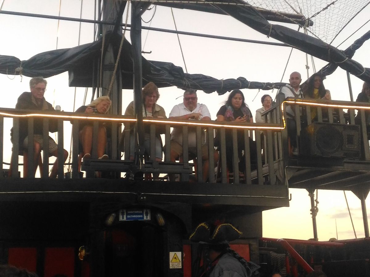 陽気な海賊達と楽しい時間を過ごすことができました。乗船前からメキシカンジョークをかましてくれたり、驚かされました!いざ、乗船してみると乗客みんなが楽しめるようにキャプテンが盛り上げてくれます!フェイスペインティングが得意な日本語上手な海賊もいます。日本人参加者は全体の中では少ないですが、キャプテンや海賊の仲間がいっぱいからんでくれます。飲み物もこまめに聞いてくれます。お誕生日の人をお祝いしたりゲームをしたり海賊達のショートコント?を見たりして楽しい時間はあっという間に過ぎて行きます。夜ご飯はビーフステーキで、付け合せやサラダなどはブッフェ形式です。まあ美味しかったです。終盤にはジャックスパロウが登場してキャプテンフックと戦う場面もあります!ジャックはイケメンです!初めてのカンクンでの素晴らしい思い出になりました。またカンクンに来ることができたらもう一度行きたいです!