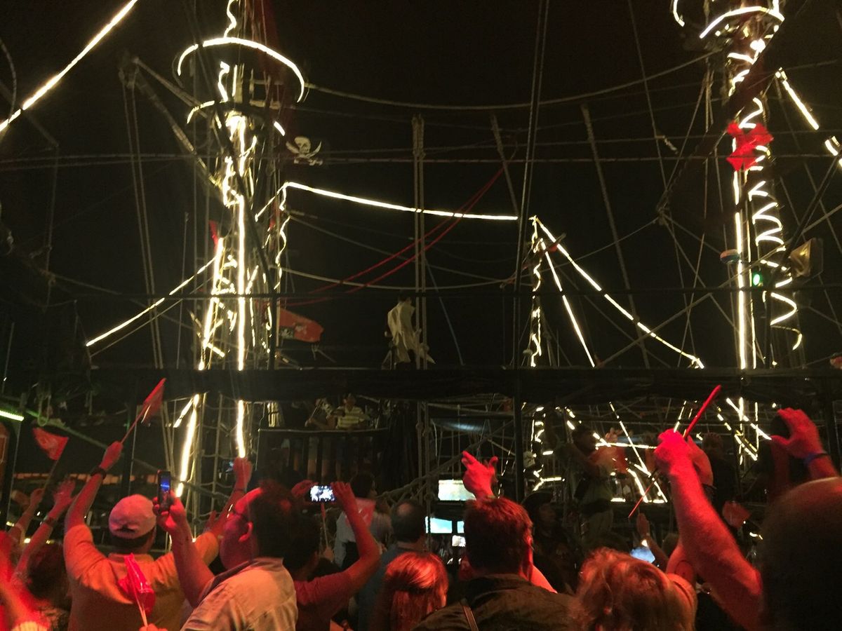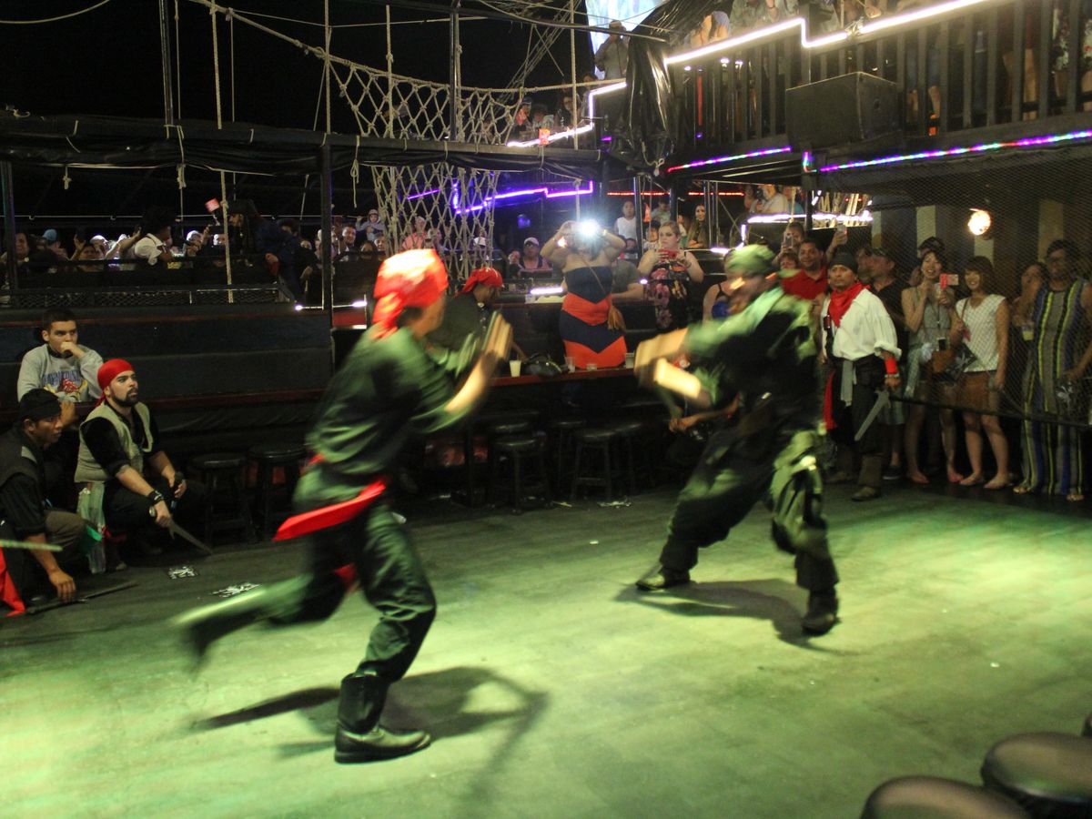 ご飯を終えると、海賊船の同志の本格的なショーが始まり、目の前で繰り広げられる海賊たちの戦いは必見です。ショーが終わると海賊たちも交え、みんなでお酒を飲んで、踊り倒します笑。