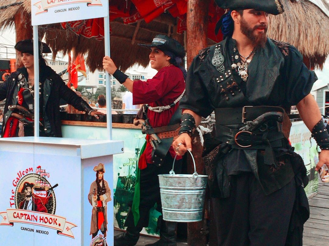 場所はカンクンのホテルゾーンの端の方にあり、バスを降りた瞬間から海賊の格好をした人が案内してくれたので迷うことはなかったです。
