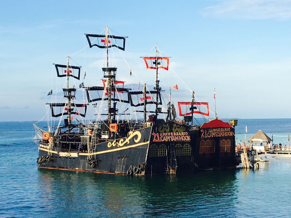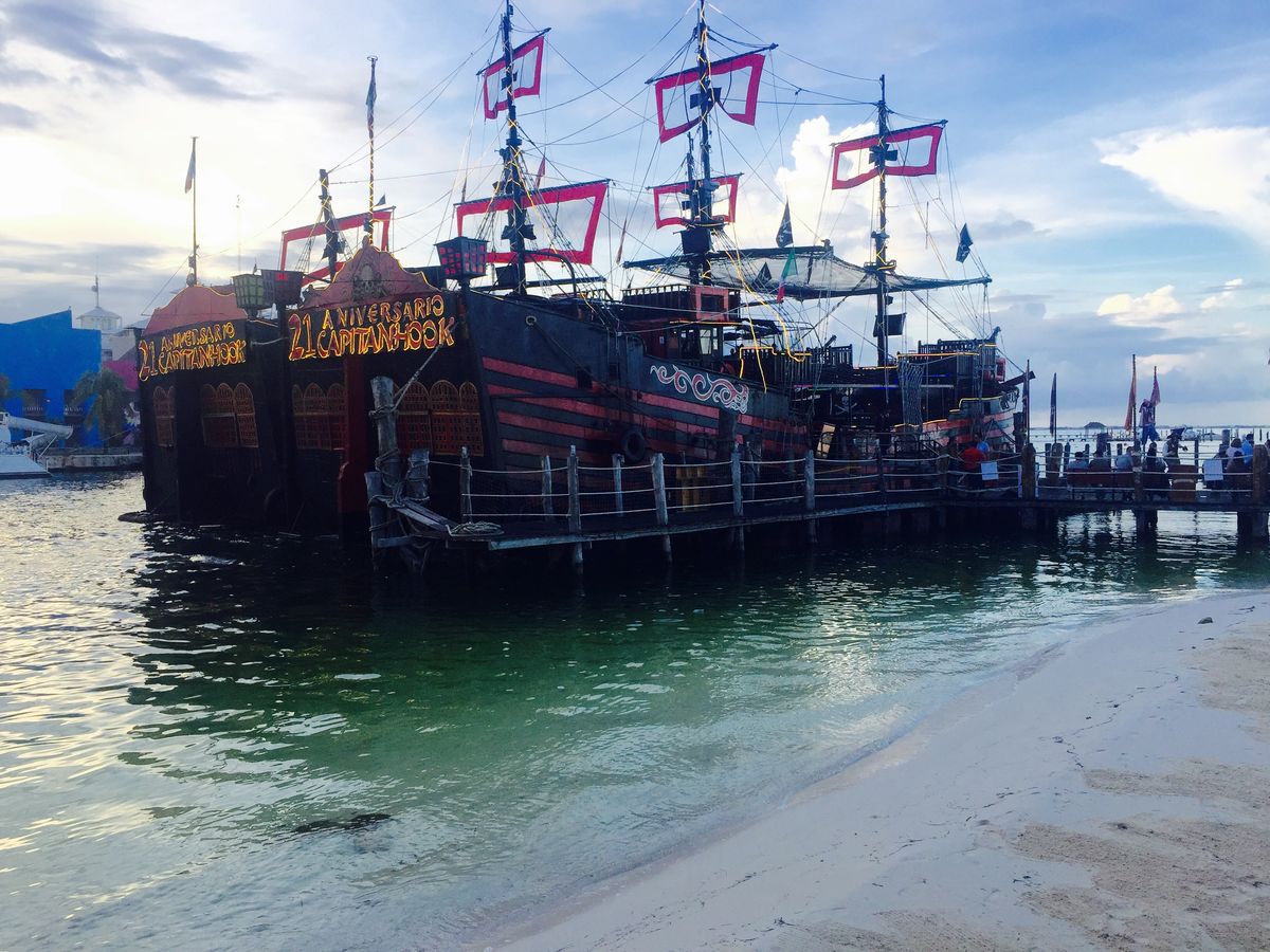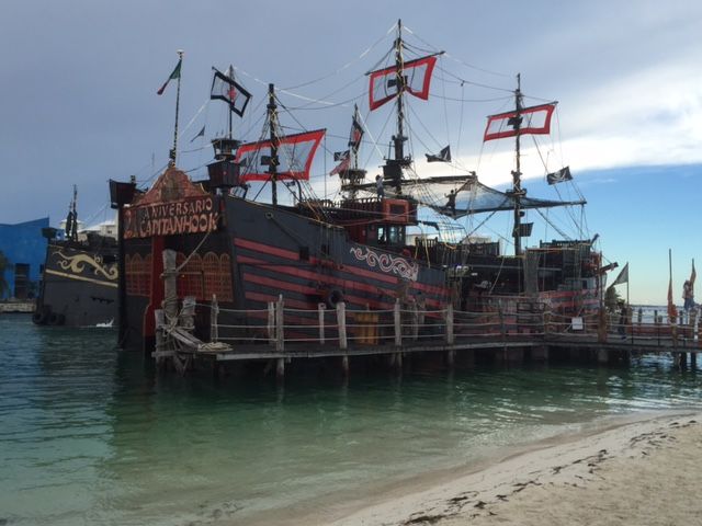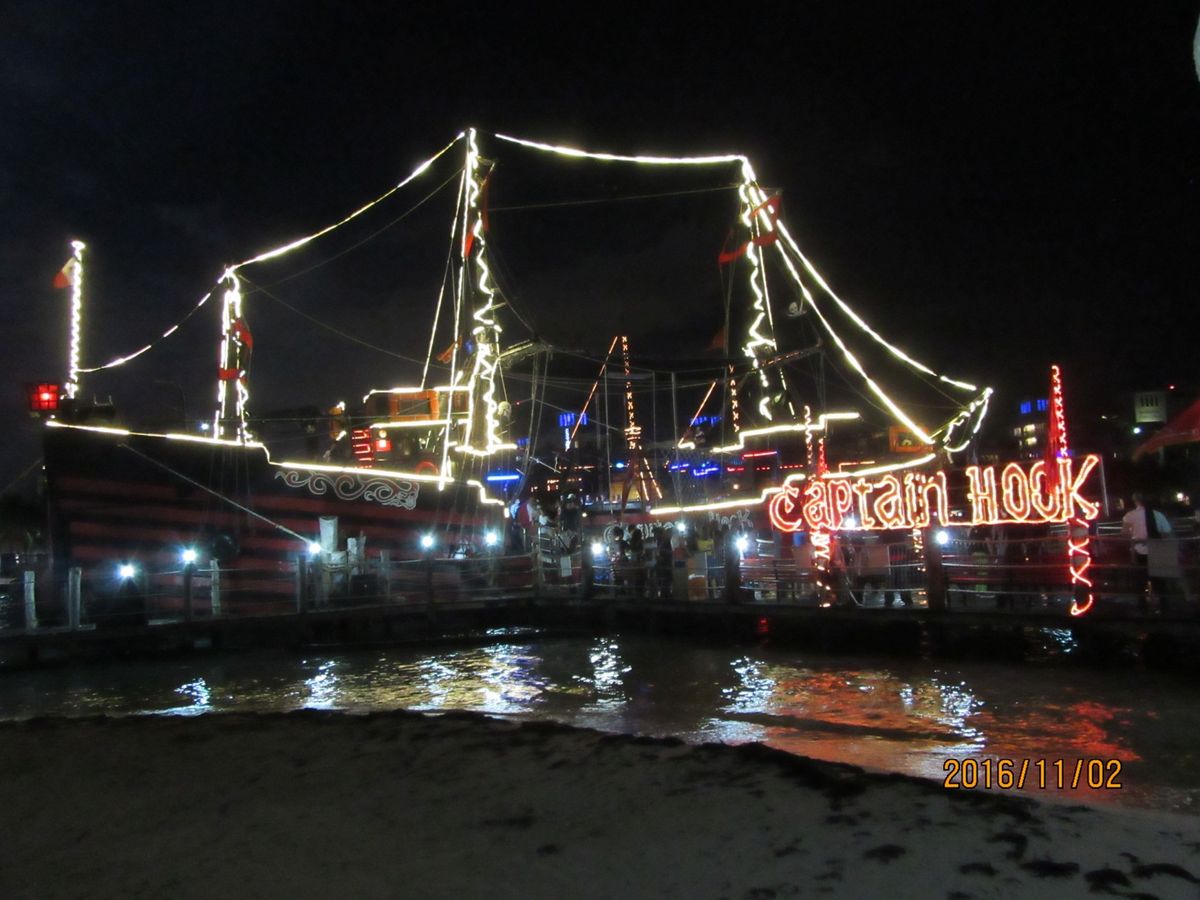 友人と初めてのカンクン旅行。カリブ海といえば海賊、クルーズということで、このキャプテンフックのディナークルーズに参加しました。