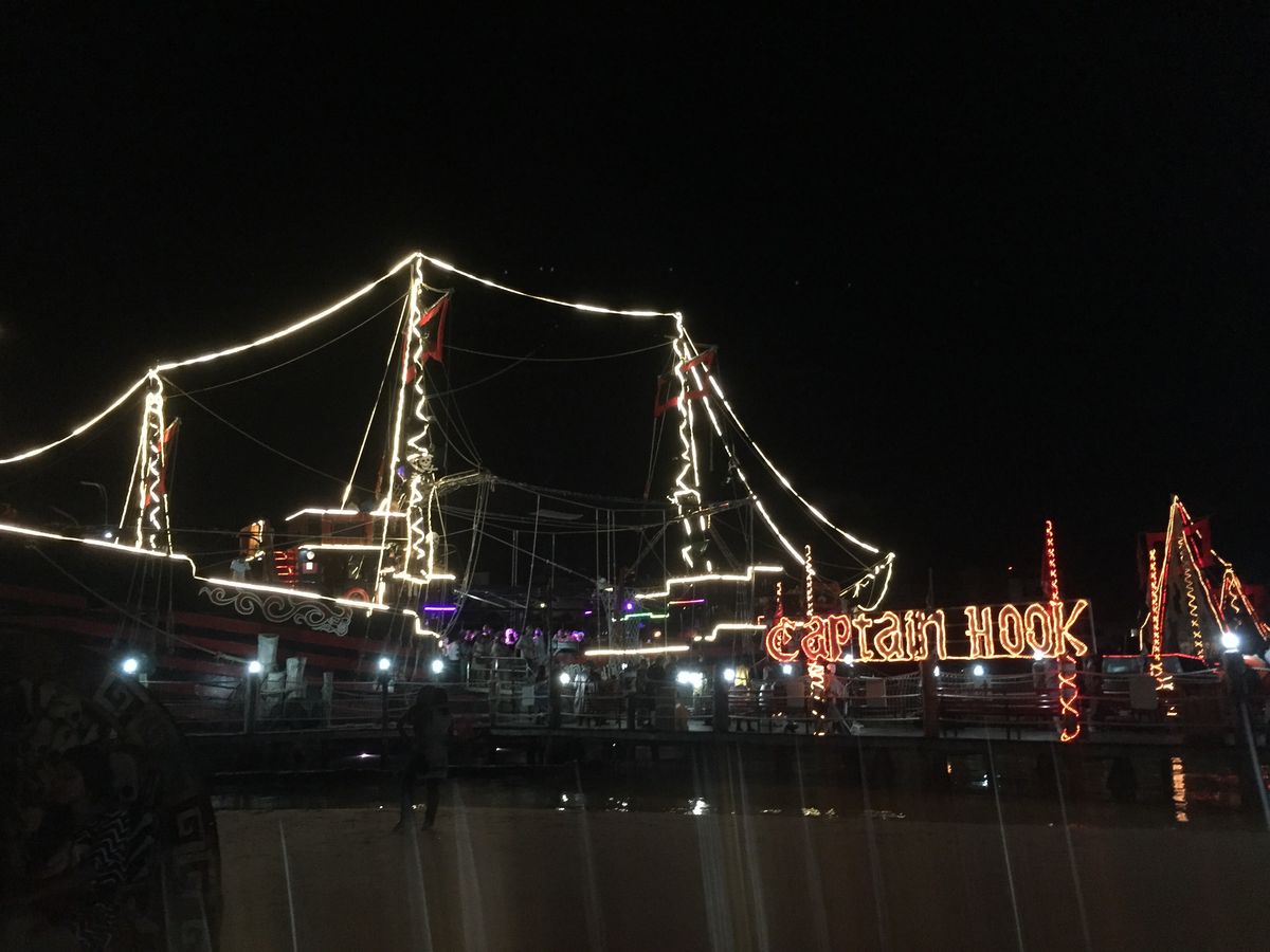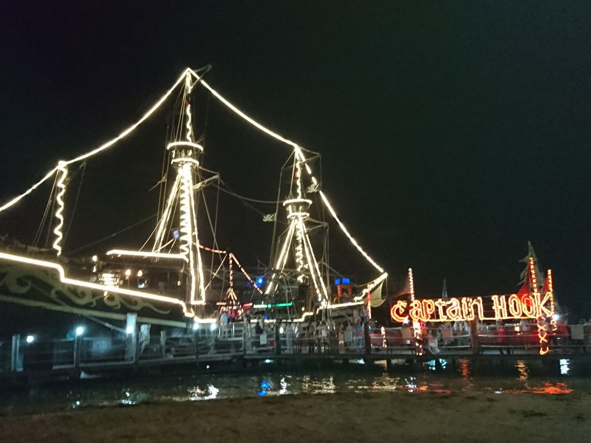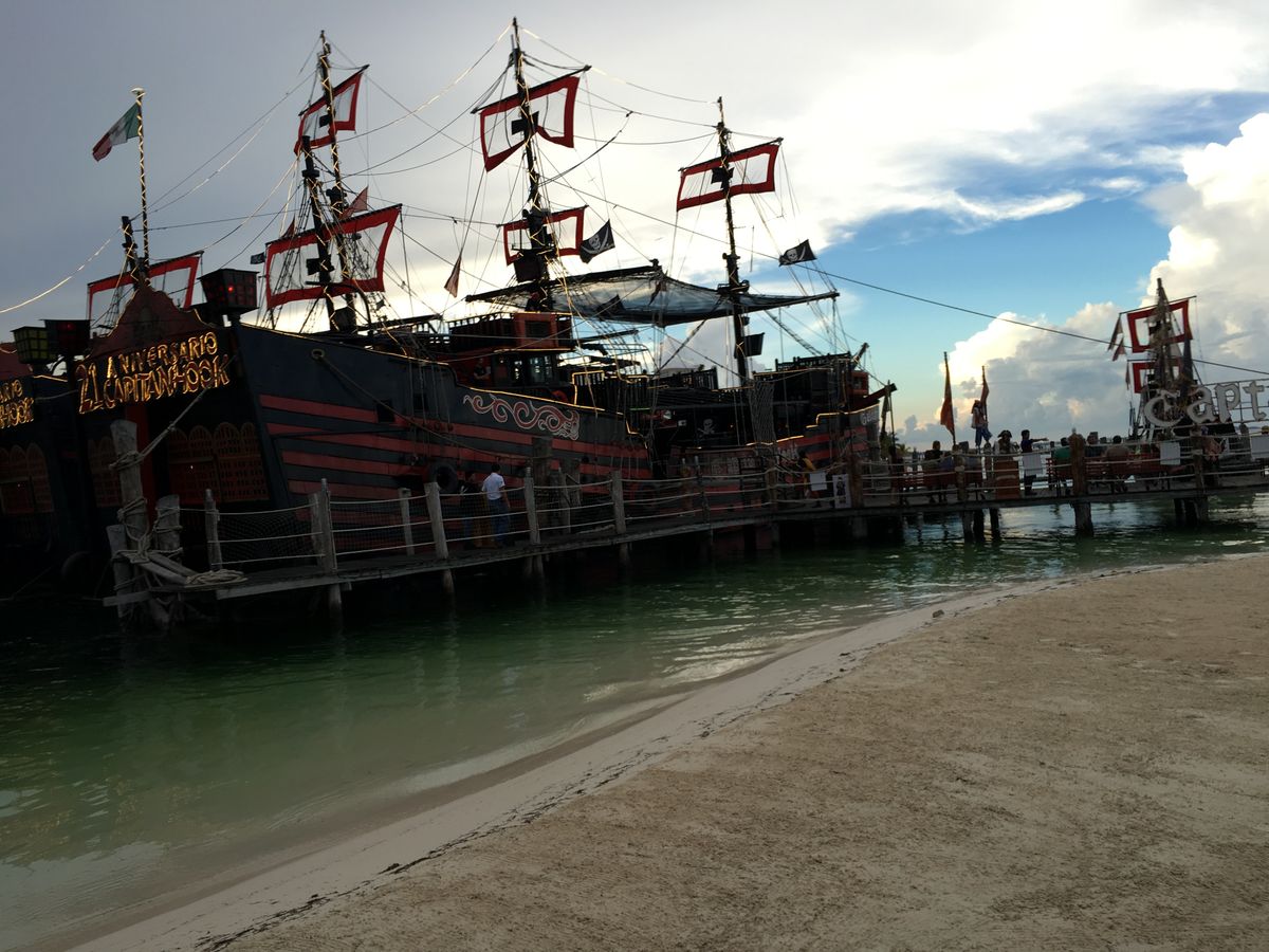友人と初めてのカンクン旅行。カリブ海といえば海賊、クルーズということで、このキャプテンフックのディナークルーズに参加しました。