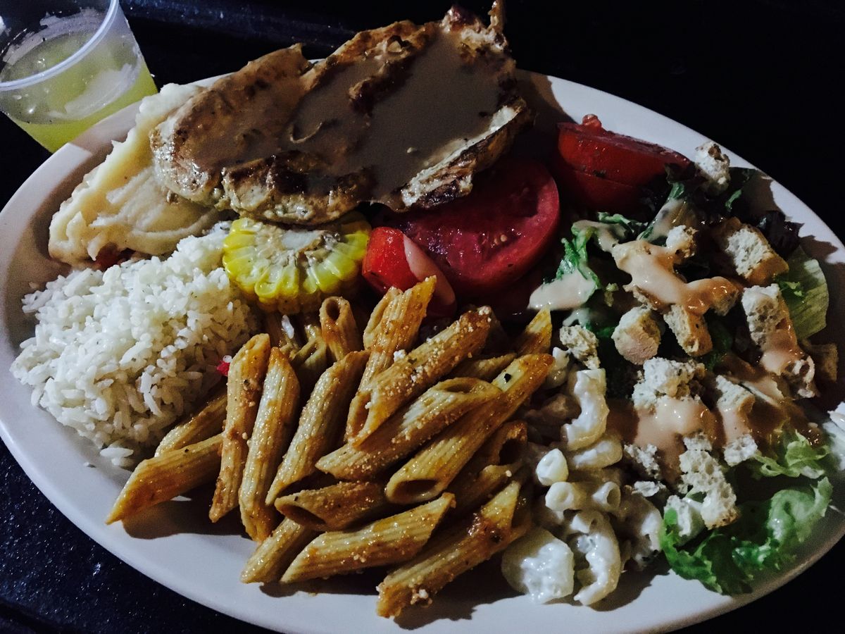 食事も鉄板でロブスターやお肉を焼いているのですが、仕組みがよくわからず、チケットを手渡すと大きなお肉が乗せられてしまいました。。