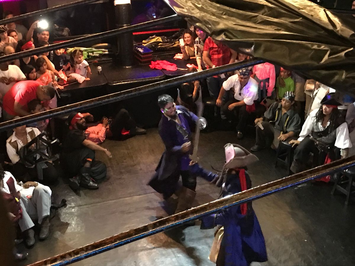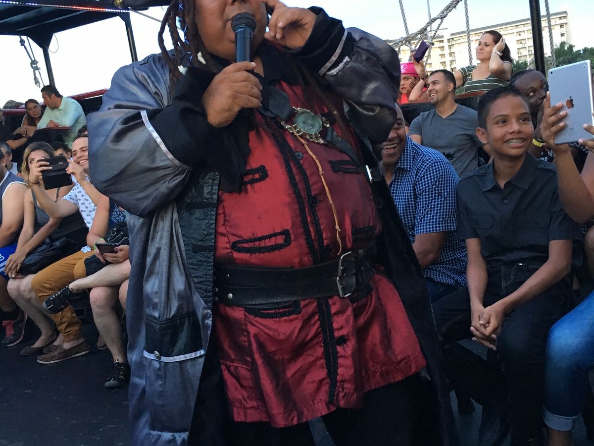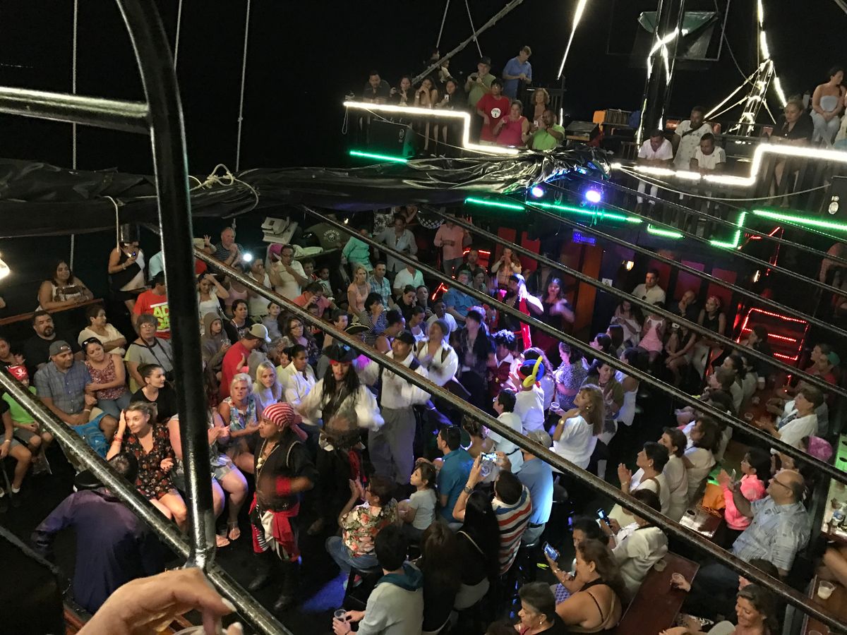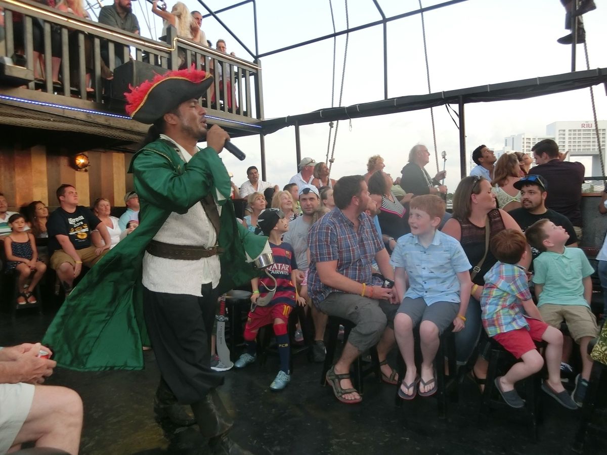 参加したのは今回で2回目です。4年前にも乗船しました。前回はジョニーデップにそっくりの船長だったので気分的にもかなり盛り上がりましたが、今回は違うタイプの船長だったので、それはそれで違う個性の船長でよかったです。船長はスペイン語と英語を使い分けて面白おかしくショーを進行してくれます。カリブ海という場所柄 かつてはこういう海賊たちが横行していたのだろうなという想いを彷彿とさせるテーマでショーに入り込めます。子供連れも楽しいと思います。