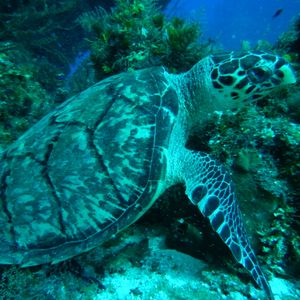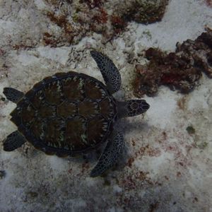 2ダイブ目は、魚が沢山いる場所を案内してくれました。とても綺麗で幻想的でした。潜る前にガイドさんは「頑張って亀見つけるねー」と仰ってましたが、その通りに私達は亀と遭遇することができ、記念撮影もできました。とても嬉しかったです。