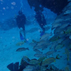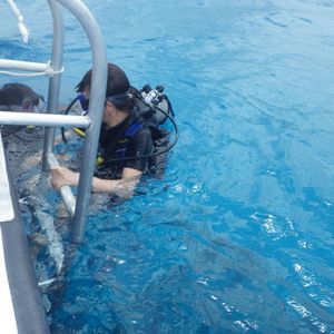体験ダイブの人はまず浅瀬で日本人ガイドのマツさんが優しく教えてくれます。ダイビング中もマツさんがサポート、リードしてくれるので安心して楽しめました。ナースシャークやロブスター、珍しい魚も見れて大満足です!当日は曇りでしたが、透明度は35mほどありました。ダイビング中もマツさんが写真をたくさん撮ってくれており、見られるのが楽しみです。