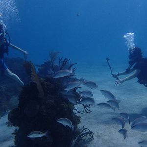 誕生日旅行でカンクンに行き、コスメル島体験ダイビングに友達と参加しました。朝ホテルまで迎えに来てくれ、ダイビングツアーは私たちだけだったので、インストラクターさんを独占できました。コスメル島に着いたら、違う会社のダイビングツアーと一緒でしたが、偶然にも前日のツアーで一緒の子たちでした!笑
