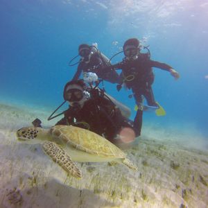会社同僚と参加しました。ともにまったくの初心者で本当に潜れるのか心配でした。基本を習いすぐに船で沖の水深6mに。最初は上手くいかないこともありましたが、ガイドさんの案内も上手くついて行くうちに慣れ、海中散歩を楽しむことが出来ました。最後にウミガメにも遭遇でき満足です。一度やってみたいけどと言う人向きだとと思います。