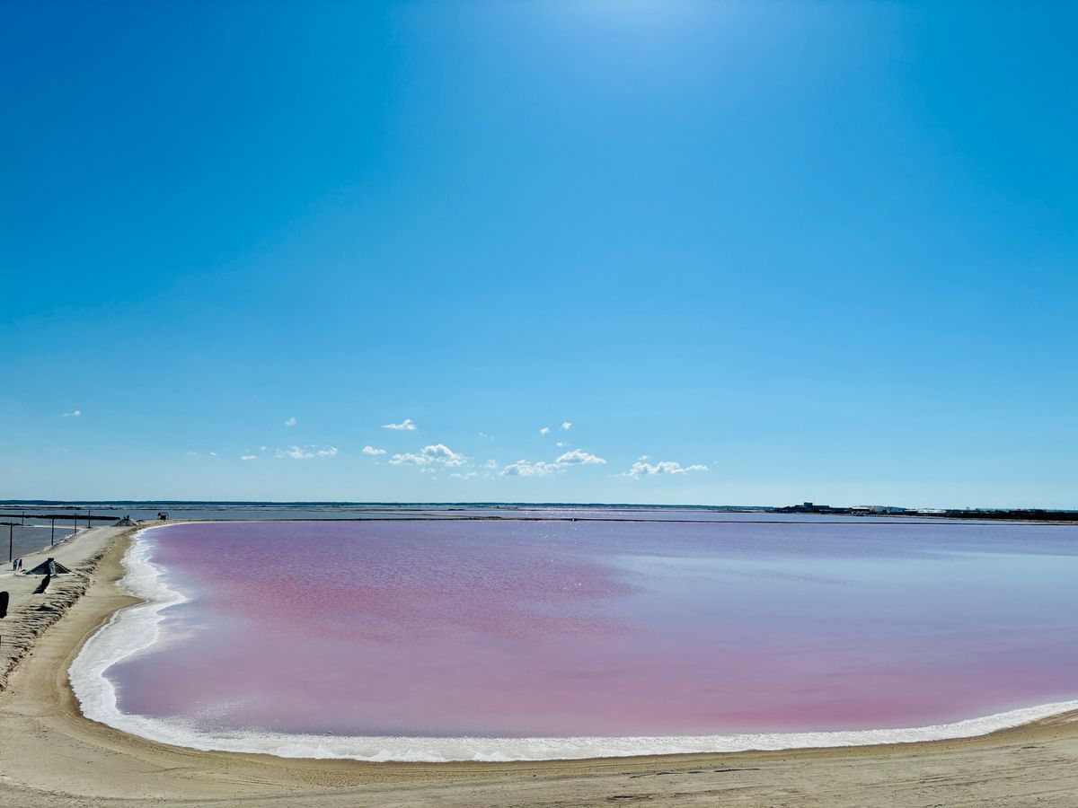 ピンクレイクは天候次第で色の見え方が違い晴天と風が必要とのことでしたが、行った際にはとても綺麗なピンクでした。塩の回収が始まってしまうと茶色になってしまいますが、見学した塩田はまだ回収が始まっておらず、運が良かったです(隣の塩田は既に茶色。見学した塩田も近々回収が始まるタイミングだったそうです)。