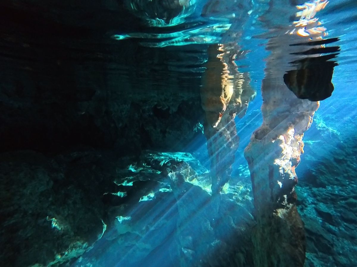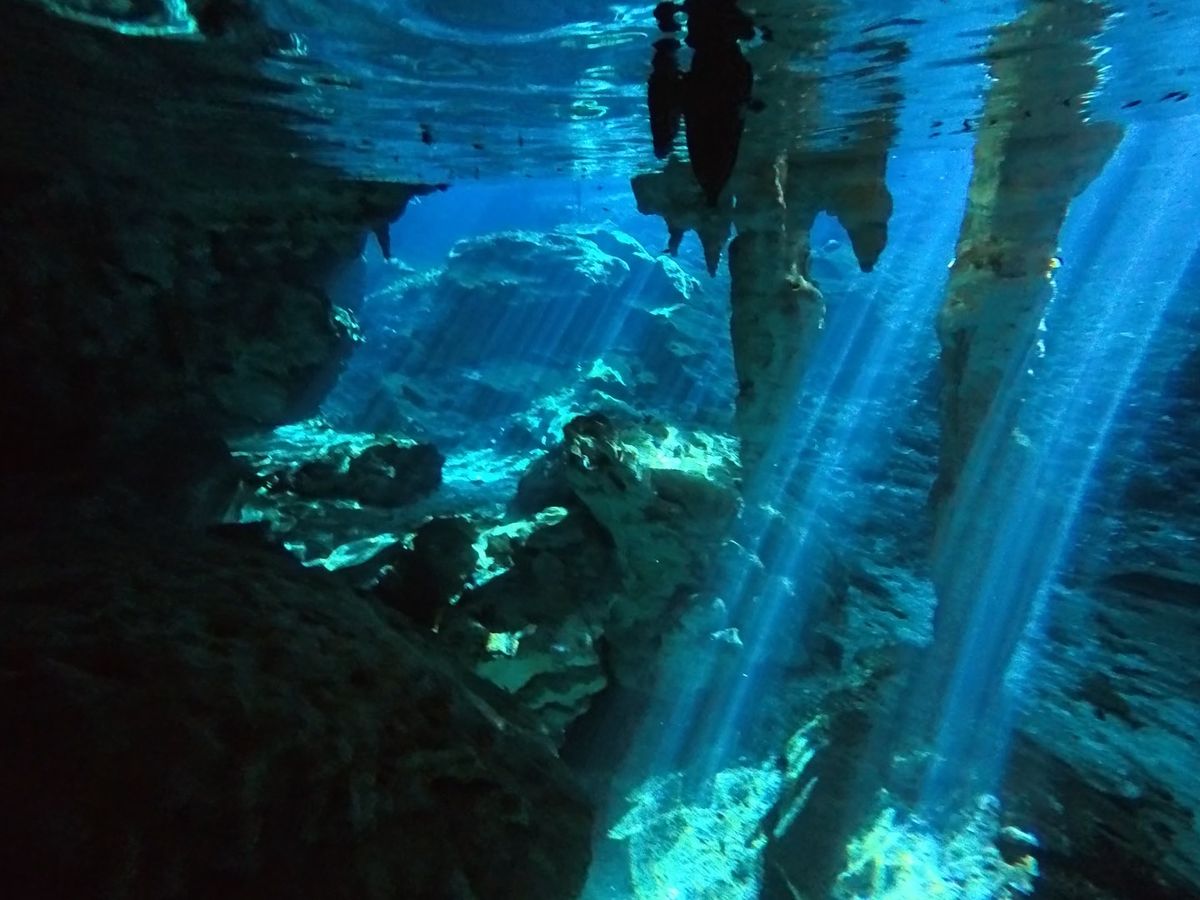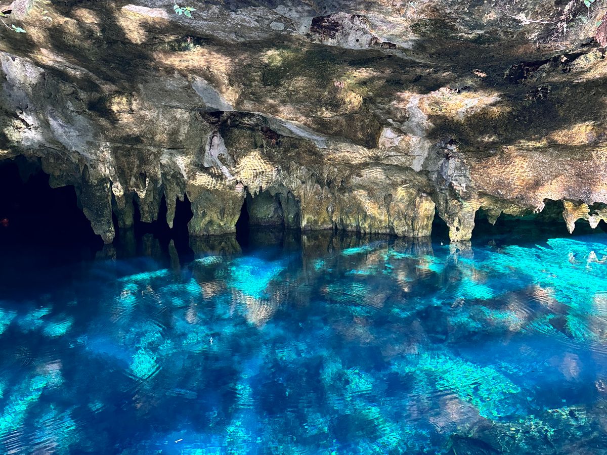 私達のグループが一番乗りだったので、透明度の高い、綺麗な青色をしたセノーテや、光のカーテンを見ることができました。