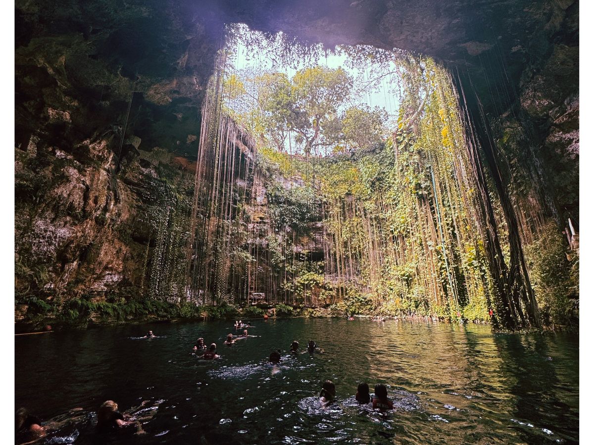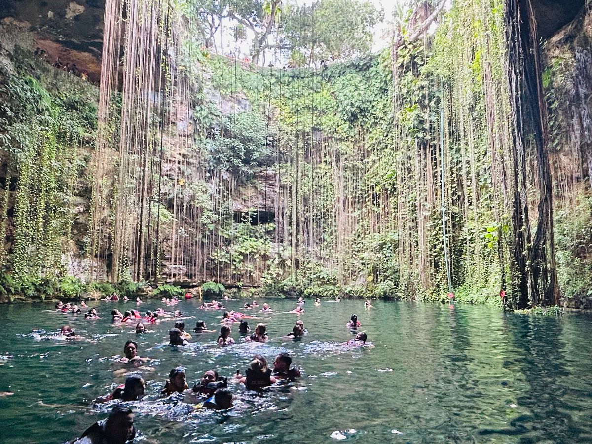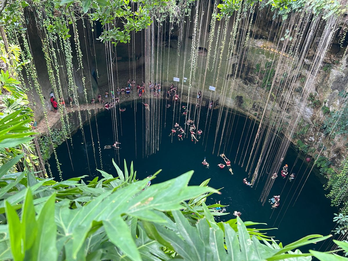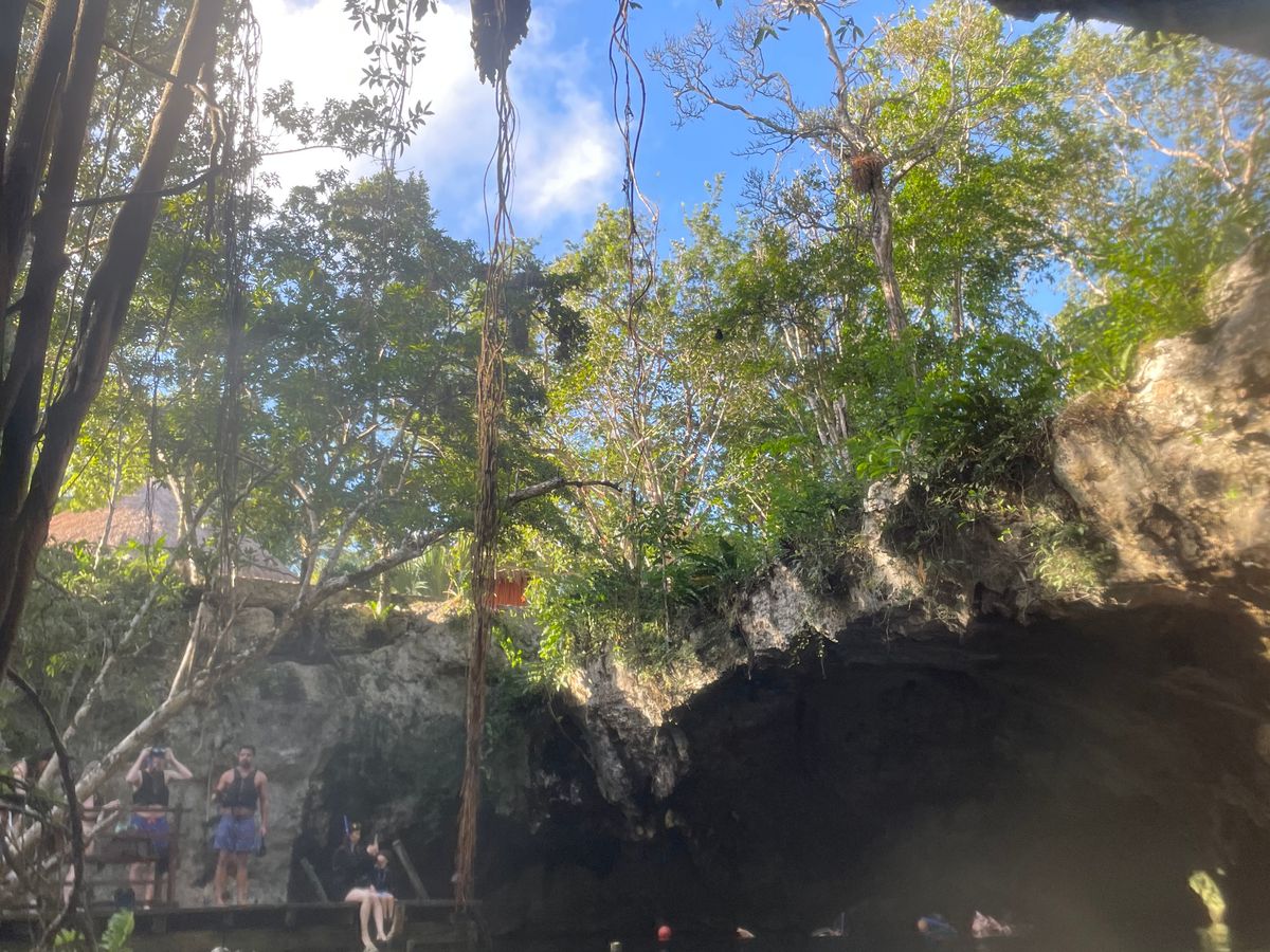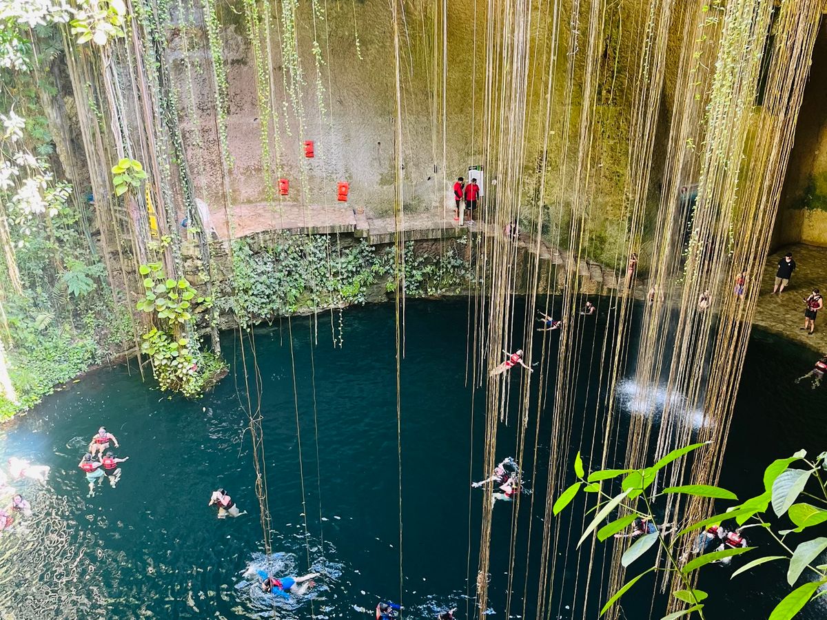 セノーテ・イキルでは、遊泳はありませんが、上から覗いたり、下に降りて見上げることも可能です。たくさんの外国の方が泳いでました。個人的には、グラン・セノーテで良かったな〜!