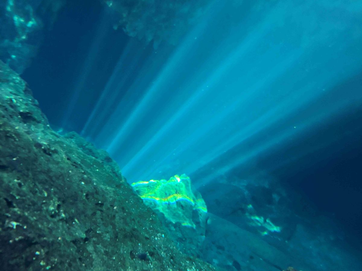 しょっぱなのグランセノーテでも、マミーさんの予想通りきれいな光のカーテンを見ることができ、感激です。