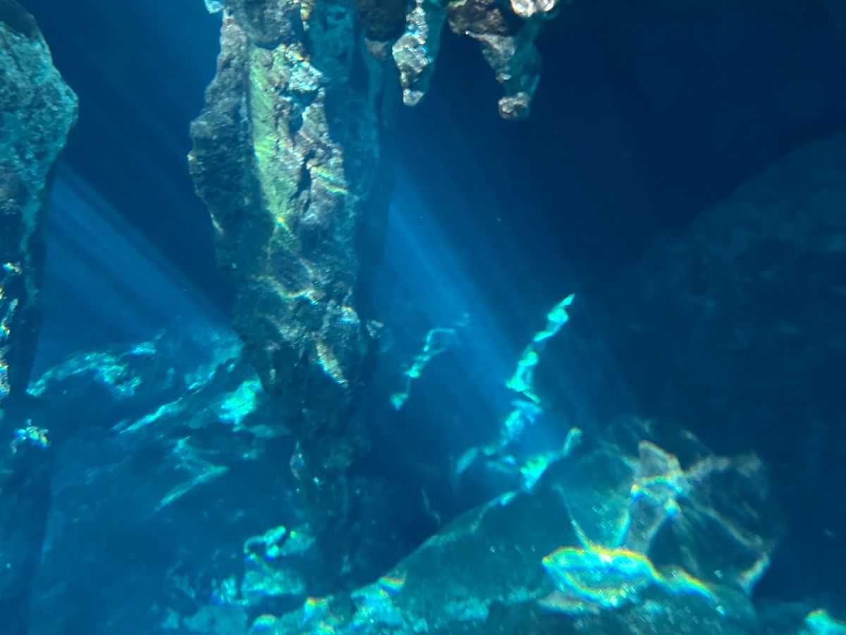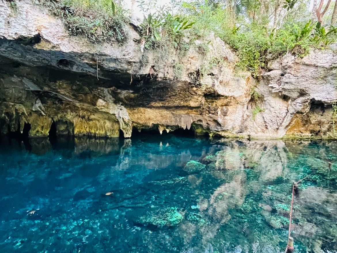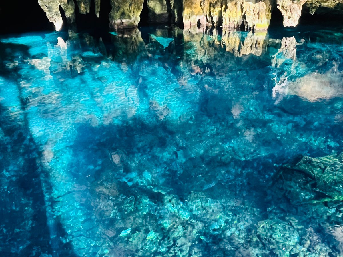グランセノーテへ。水着さえ来ていけば、ライフジャケットもシュノーケリングマスクも貸してくれるのですぐに泳げます。1組に1個スマホ防水ケースもくれるので、ここで使えます。私は泳ぐのが苦手なので最初不安でしたが、ちゃんと浮くので全然大丈夫です!私が参加した際には4歳のお子さん、年配の方も泳がれていたので、誰でも楽しめると思います。水が透明で綺麗で、青色の光のカーテン感動です!Mamiさんが写真も撮ってくれます。50分程えい遊泳時間があります。満足です。