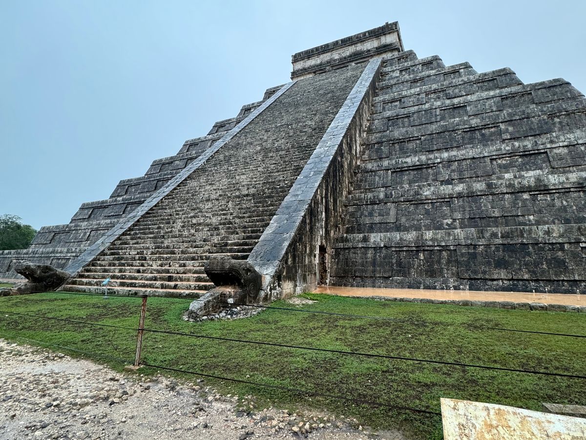チチェンイッツァ遺跡へ。グランセノーテから向かってる途中大雨で、そのまま遺跡見学中も大雨。現地でほぼ全員がカッパを購入しました。1番安い方からの購入をMamiさんが手伝ってくれたので、$500ペソ/$4USでした。ピンクレイクに傘を持ち込むことが出来ないため、カッパを事前に持ってくるか購入することをおすすめします。遺跡内では、とても丁寧に1時間ほど掛けて中をガイドしてくれました。説明の仕方・話し方・知識 Mamiさん上手です。飽きません!面白い!わかりやすい!1番メインとなる所で1組ずつ写真を数枚撮って頂けましたが、もう少し写真を撮る時間・10分程の自由解散設けて欲しかったです。ガイドを聞いてバスに戻る流れのような感じで遺跡を後にしてしまったため、1番楽しみにしていたスポットとしては心残りがあります。