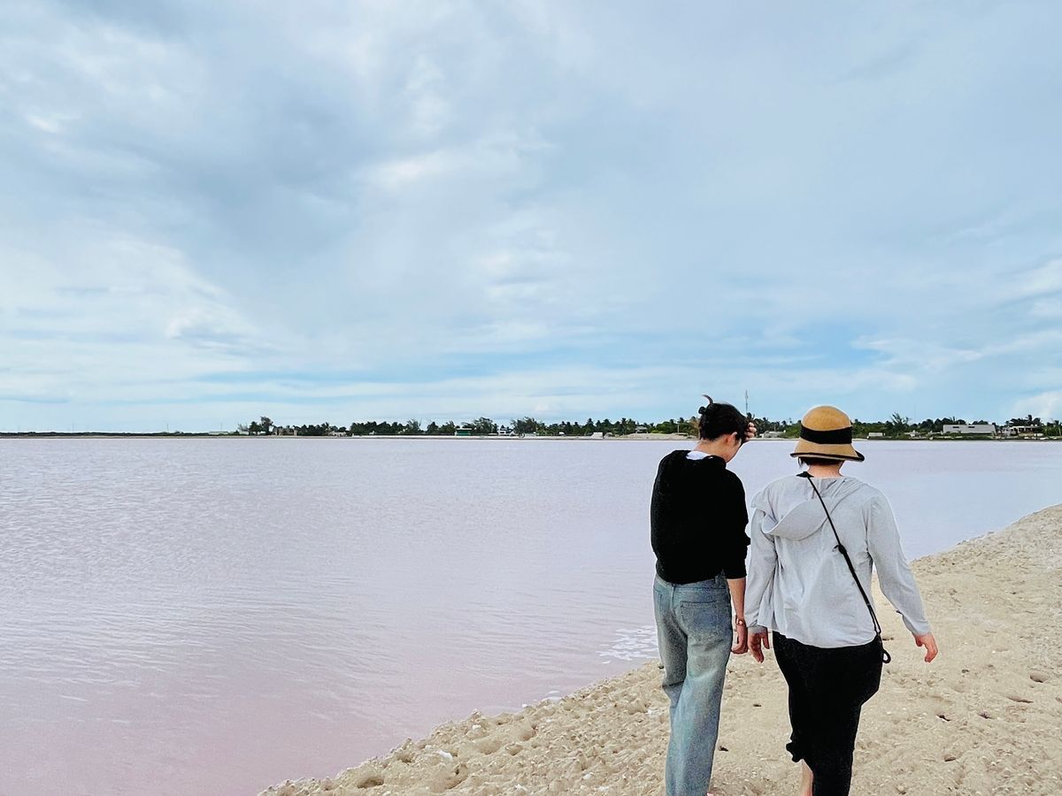 とにかくカンクンから遠い。早朝のピックアップからホテルの到着まで13時間以上かかります。私たちの時は小型バスだったので、狭かったです。ピンクレイクはピンクに見えない時もあると言われましたが、素晴らしいピンク色の塩田を見ることができました。