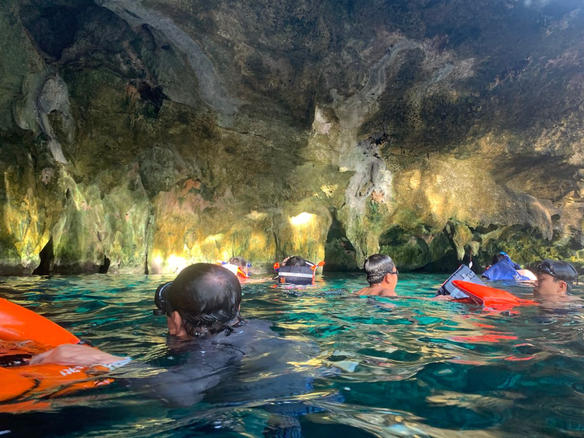 underground riverは3つあり、コースによっては薄暗い地下水路を泳ぐコースがあり小さいお子さんで怖くて泣いている子がいました。また川?(海水でした)には魚が泳いでいたのでスノーケリングの準備・レンタルをお薦めします。