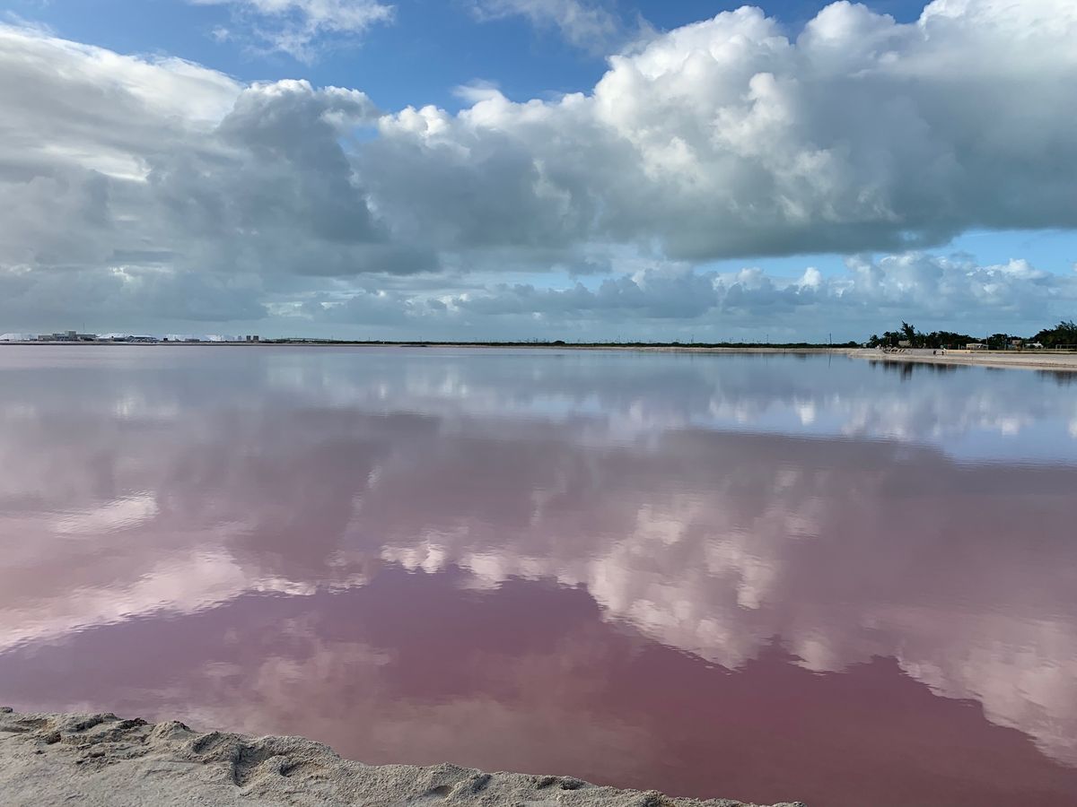 私たちのホテルは朝6:20のお迎えのはずが、5分以上過ぎても来ない、、そろそろ緊急連絡先に電話をしようと考えていたところ、日本人ガイドのマミさんがホテルに電話をくださり従業員の方から「もう少し待ってて」と伝言を頂きました。いざ、バスに乗り込み出発。この日はピンクレイクに行かないグループも含めて26人の参加でした。私たちを含め、ほとんどがハネムーンのカップルです。大型バスだったので広々。グランセノーテにはすぐ着きました。バスを降りてびっくり。寒い!!シャワーを浴びるのですが、ガタガタ震えが止まらず本当に本当に寒かったです。セノーテに入ると暖かく、きれいな光のカーテンや魚を見ることができました。洞窟の方へは怖くて進めなかったです。女性用トイレは数も少ないのでゆっくり着替えたい人は早めにあがった方が◎です。時間どおりバスに戻り、チチェンイッツァへ。トイレは便座がないものが多いので注意です。そして、セノーテとは激変、とても暑い!写真撮影やガイドさんのお話を聞きながら楽しんでいたのですが、たちっぱなしということもあり、寒暖の差から気分が悪くなり目が見えなくなって立ち上がることができなくなりました。旦那さんがガイドさんに伝えにいってくれたのですが、なかなか助けにきてもらえず、ひとりで苦しんでいました。(笑)日本にいたら救急車を呼ぼうかと思うくらい気持ち悪かったです。しばらくするとよくなったので、お昼ご飯とセノーテイキルへ。お昼はバイキングです。味は普通。ドリンクのチップは机の上にカゴを置かれるのでその中へ。セノーテの写真を上から撮って終了。ピンクレイクへ向かいます。この日はとくべつに田中さんという日本人の方が最後まで同行してくださったので安心でした。バスの移動中は基本的に爆睡。。大型バスで人数も少ないのでひとりで二席使えました。よく眠れます。ピンクレイクはとても美しく、フラミンゴもいました。写真では伝わりにくいのですが、光のあたり具合でとてもピンクになります。次にメキシコ湾にいきましたが、正直カンクンの海の方が100倍きれいなので必要なかったかな。バスから降りて砂浜を歩くし、なんだか疲れました。次のトイレ休憩のリオラガルトスはメキシコの方の日常が見られる港町。レストランのトイレも清潔で夕焼けが美しく素敵な町でした。スナックなども買えます。帰りはまたまた長いバスですが、とにかく爆睡。すぐにホテルゾーンにつきました。21時半とかだったような気がします。長時間でしたが充実した1日になりました。おすすめです。