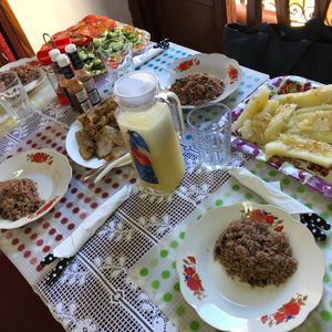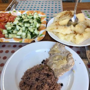 伝統的なキューバ料理を作ってもらうのを見学しつつランチを共にいただきます。市場や食品スーパーに買出しに行き、カサのキッチンを借りて調理します。