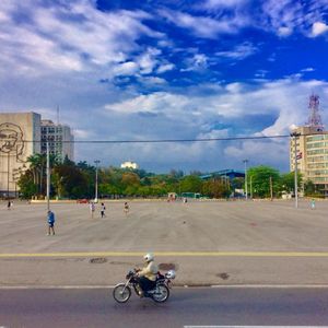 4人で参加したところ、クラシックカー2台登場!オープンカーで海岸沿いを走り、旧市街へ。革命広場ではあの有名な、ゲバラとシンフエゴスの肖像を見学して大満足です。