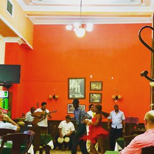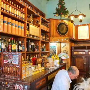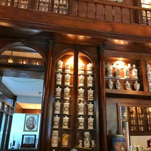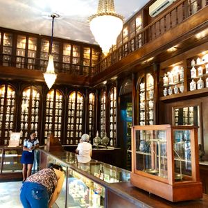 散策をしていると、ストリートミュージシャンやドアが解放されたレストランから生演奏するキューバの音楽が聞こえてきます。昔から続く薬局は建物や陳列棚も重厚で薬が入っている陶器は美しく品がありました。