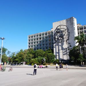 ツアーで一番最初に回る革命広場では、添乗員さんの丁寧な説明と一緒に、有名なゲバラのモニュメントやホセ・マルティ像を見ることができます。ひととおり歩き回った後は、クラシックカーの運転席に座って記念撮影タイム。