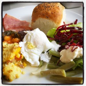 レストランの食事は、はじめはこれは何だろう?という物が出てきて面白かったですが、蒸かしたお野菜はどれも甘く素朴な味で、ポーク(甘辛く煮てあった)は豚の角煮みたいに美味しかったです。白いご飯が欲しかったです。