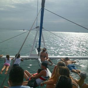 船が出発してからは、早速キユバリブレをゴクリ。先頭のハンモックでのんびりリラックス!船酔い防止で薬飲んでましたが、なくても大丈夫そうな程度の揺れでした。(天気にもよるので、心配な方は酔い止めオススメします。)