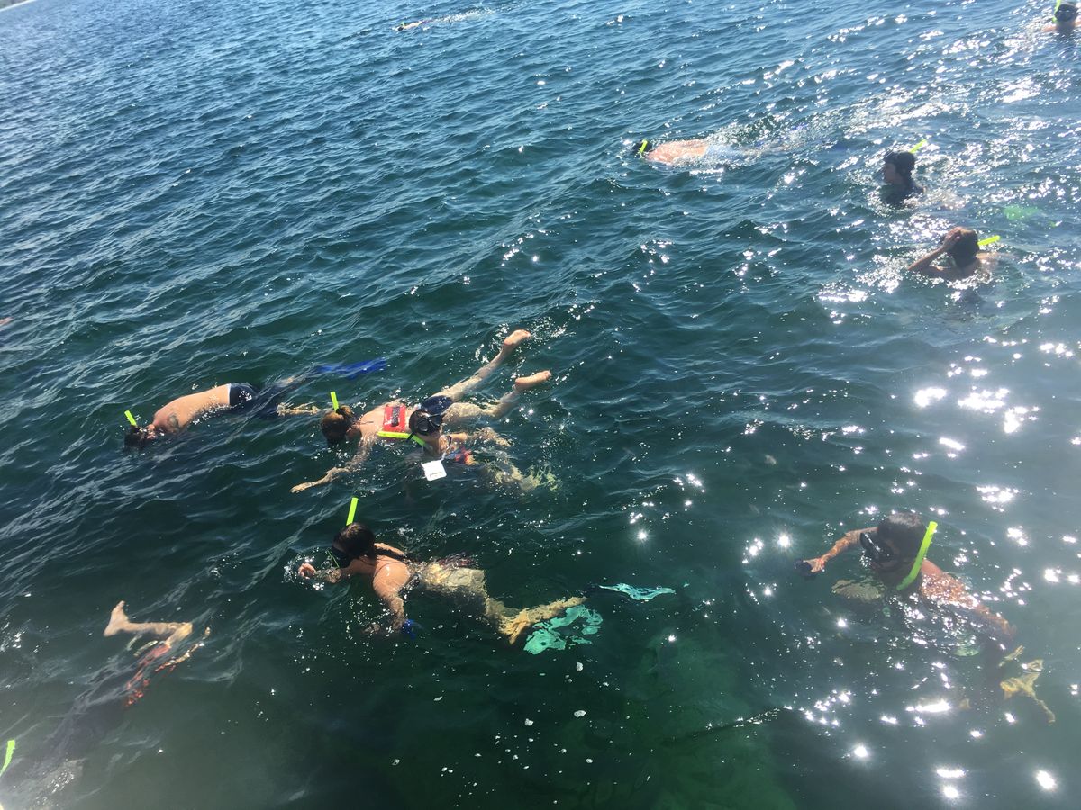 まずシュノーケルエリアに到着して30分くらい潜りました。私は泳ぎが苦手なのですぐに上がりましたが、ほとんどの人はずっと潜っていました。