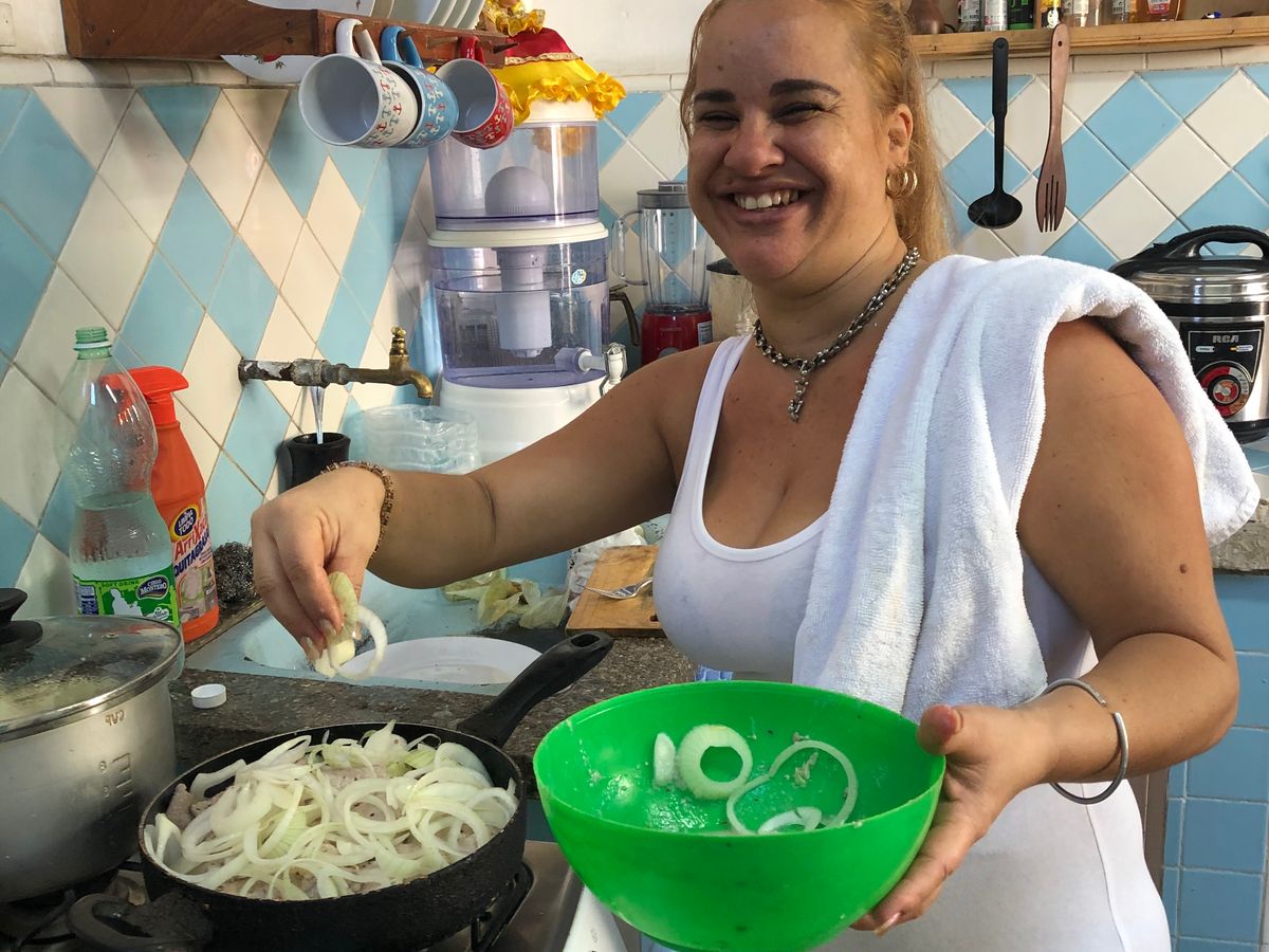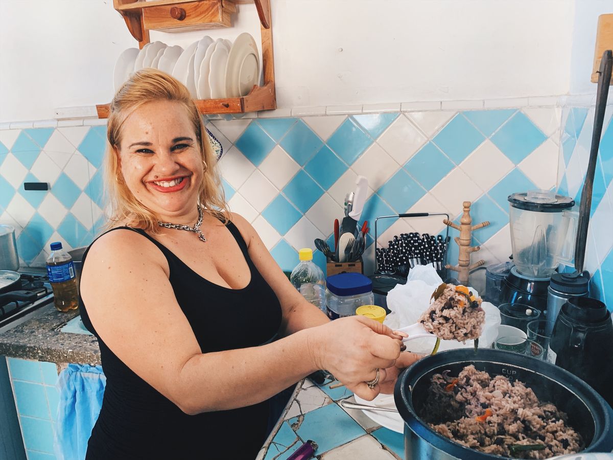 伝統的なキューバ料理を作ってもらうのを見学しつつランチを共にいただきます。市場や食品スーパーに買出しに行き、カサのキッチンを借りて調理します。